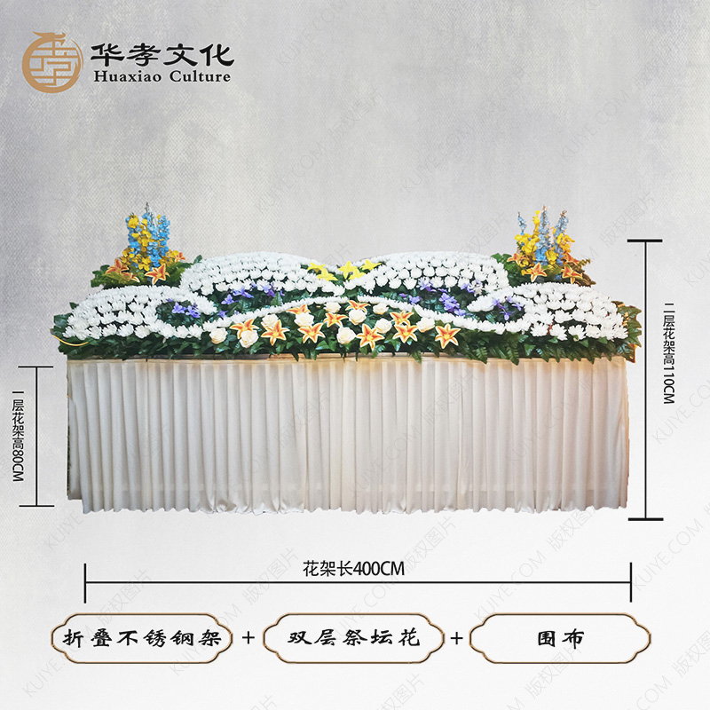 折叠不锈钢架+双层祭坛花+围布