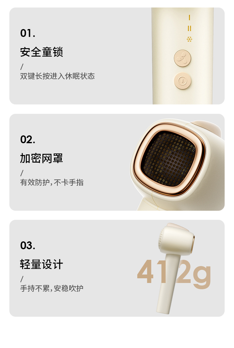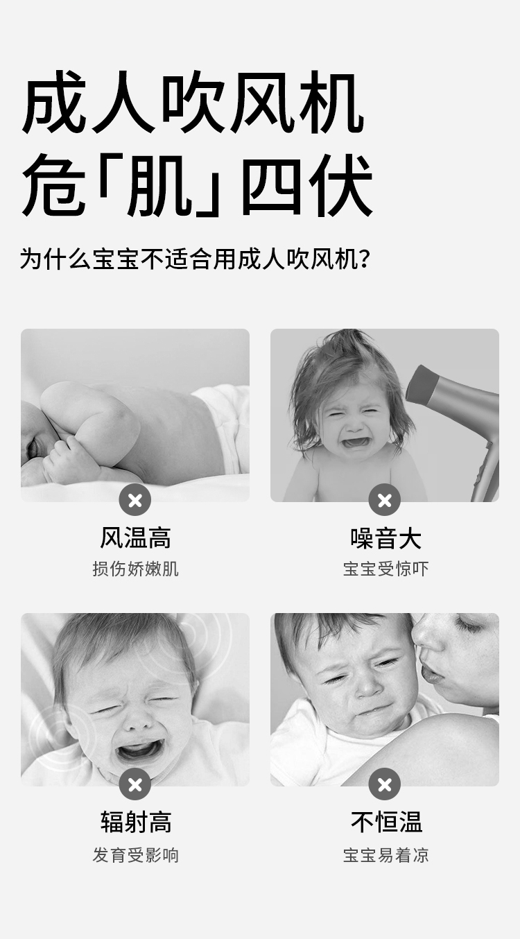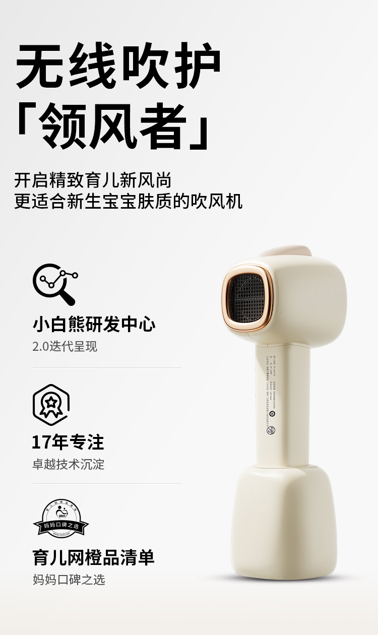 小白熊儿童吹风机轻音便捷无线恒温婴儿吹风机吹跑红屁屁7006 无线儿童电吹风