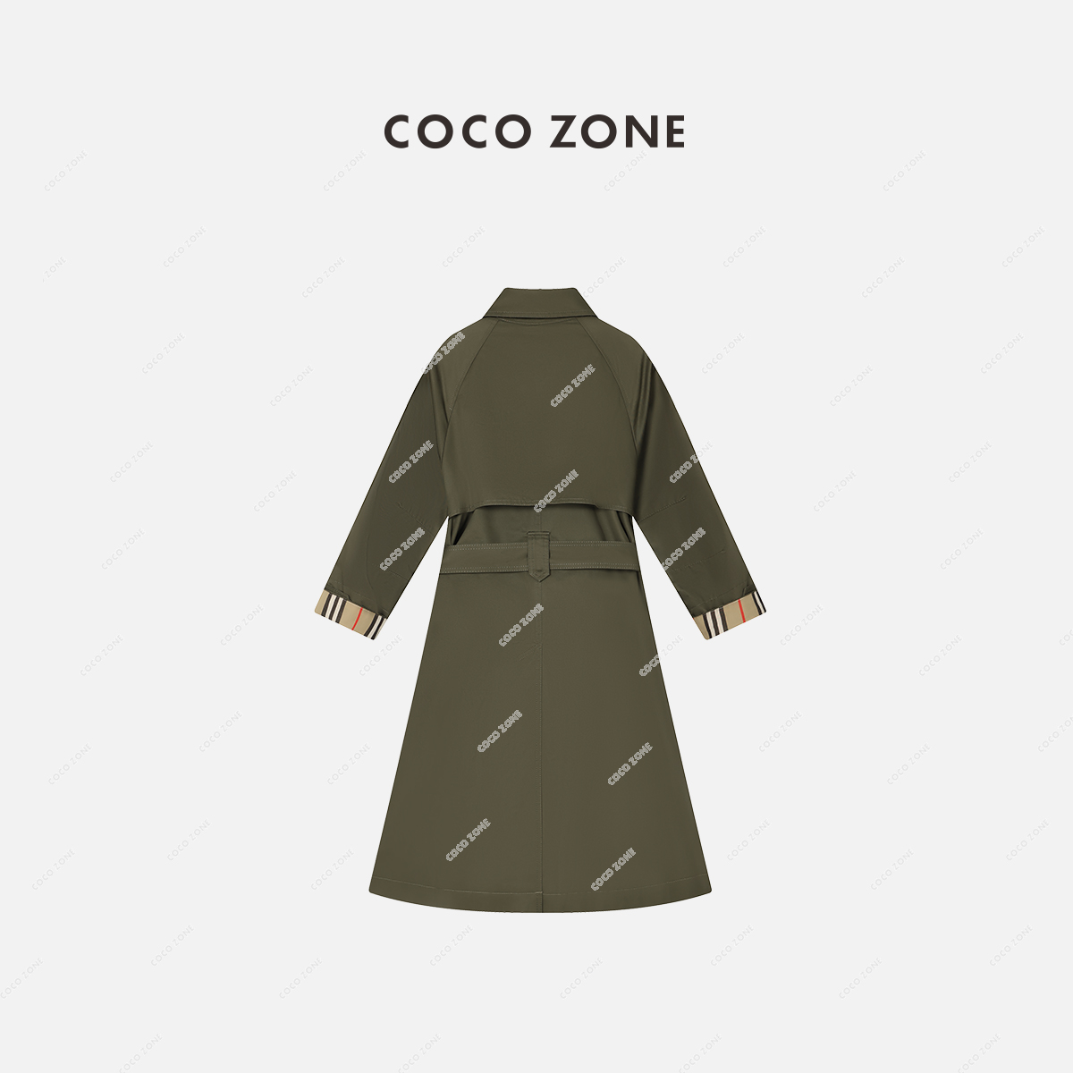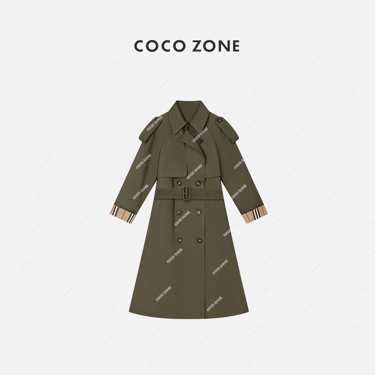 COCO ZONE 100%棉中长款风衣外套气质双排扣大衣 23C29764