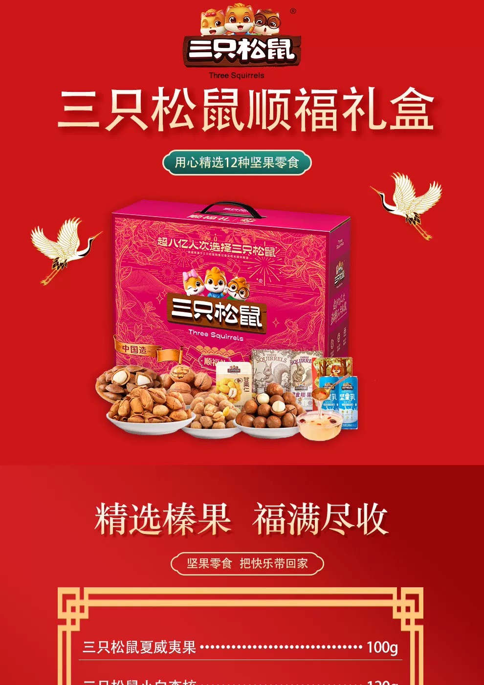 三只松鼠坚果礼盒 夏威夷果开心果坚果炒货 顺福礼盒1495g