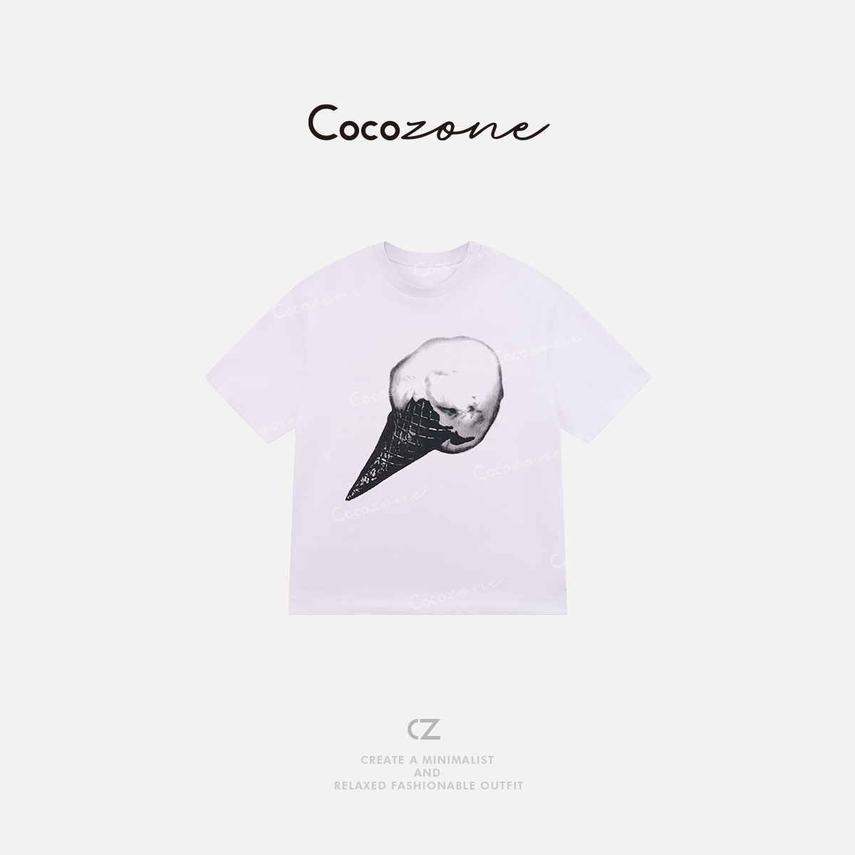 COCO ZONE 刘一一 【100棉】时尚简约甜筒印花圆领T恤CD2A0651