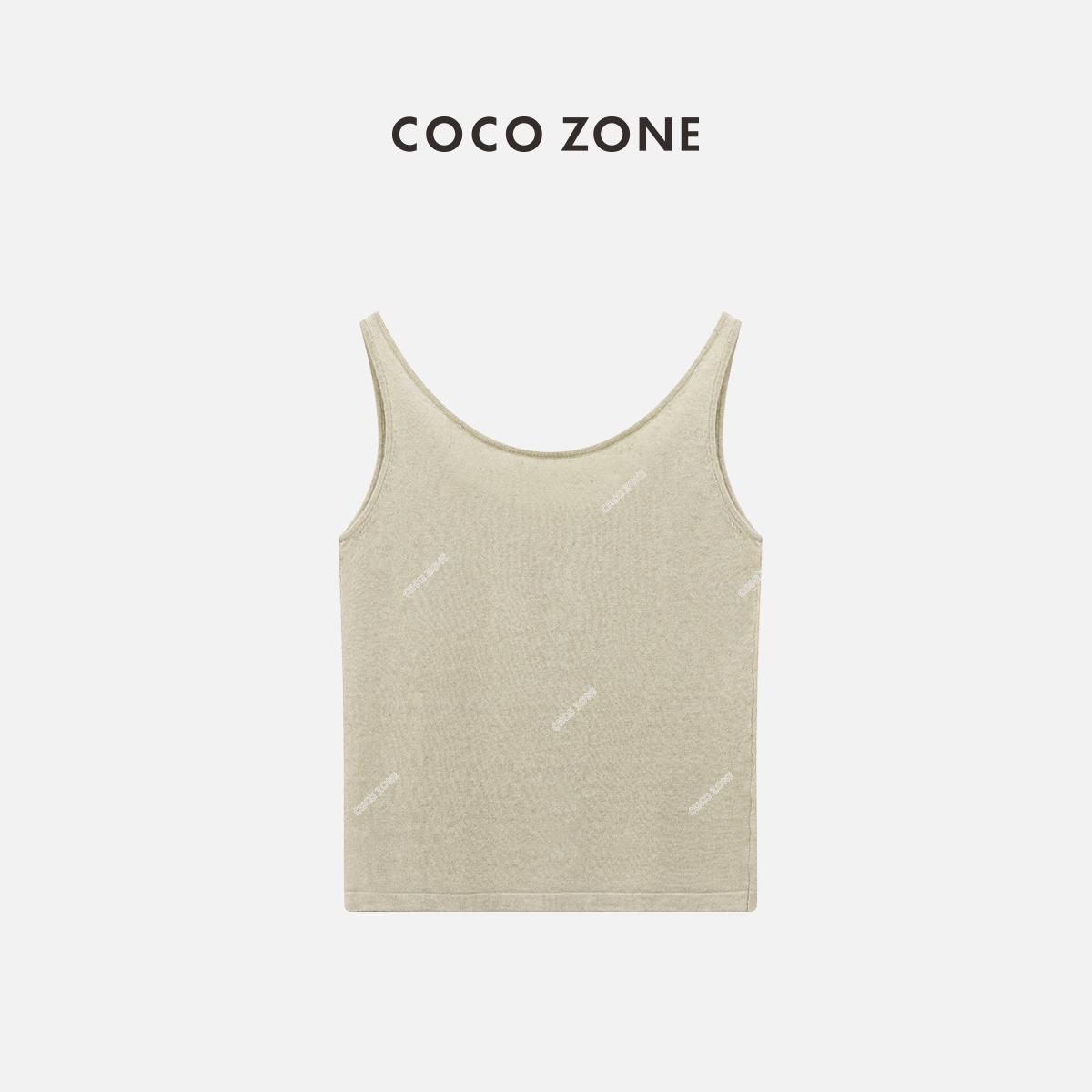 COCO ZONE2024夏季外穿U领背心针织衫纯色修身上衣CC2B0569