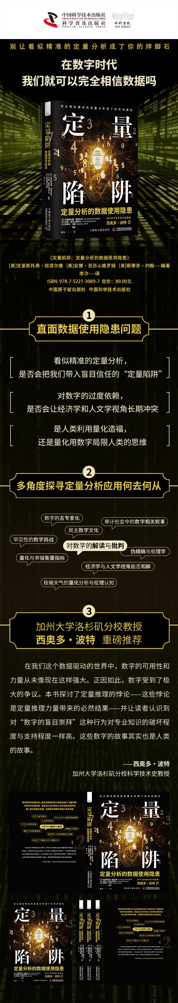 本书是多篇文章的汇编。本书主要讲述了定量分析的弊端,通过对定量分析在实际运用中的分析,指出定量分析在很多时候并不能成为我们做判断的依据。本书肯定了定量分析有价值的部分,同时指出了定量分析的局限性和不正确使用带来的问题,提倡我们在运用中应综合定量分析与定性分析两种方式,根据实际情况进行选择。