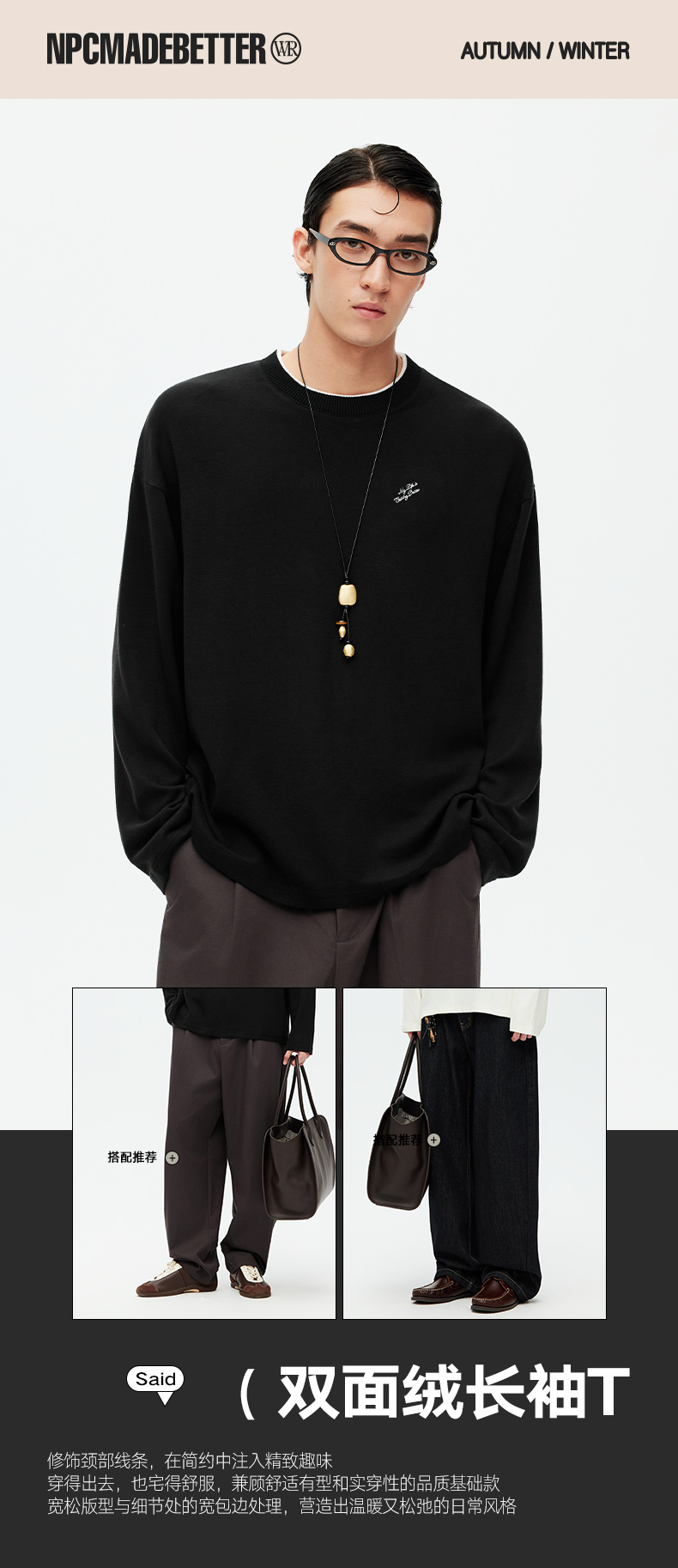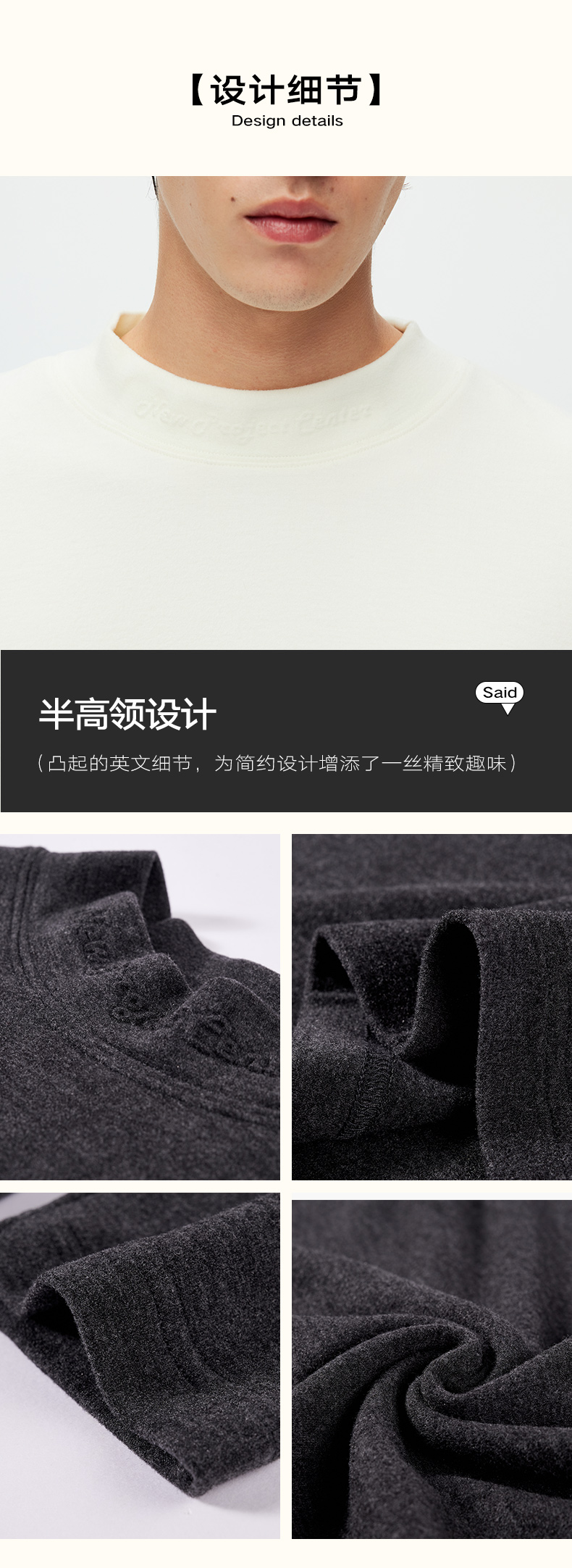 NPC潮牌领口字母印花双面绒长袖T恤半高领打底衫新上新NP58TL20
