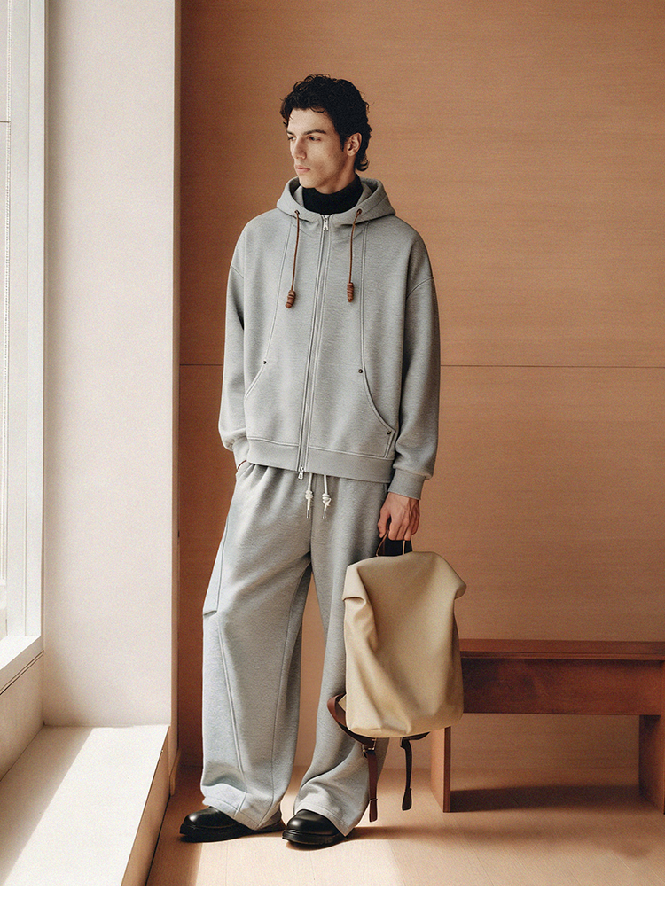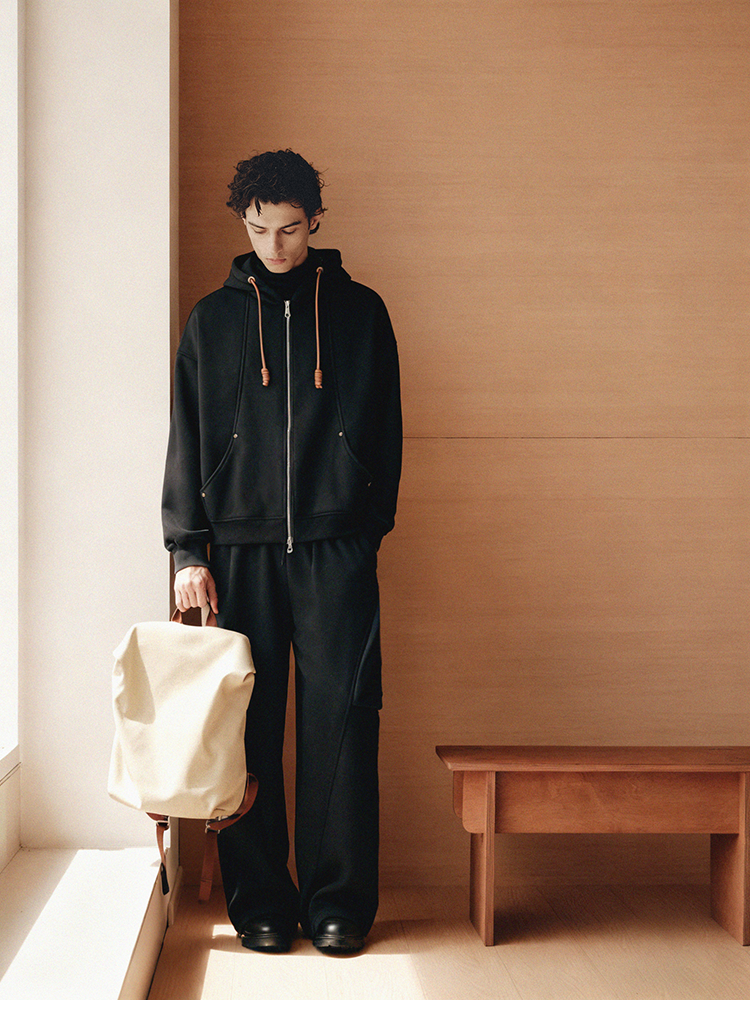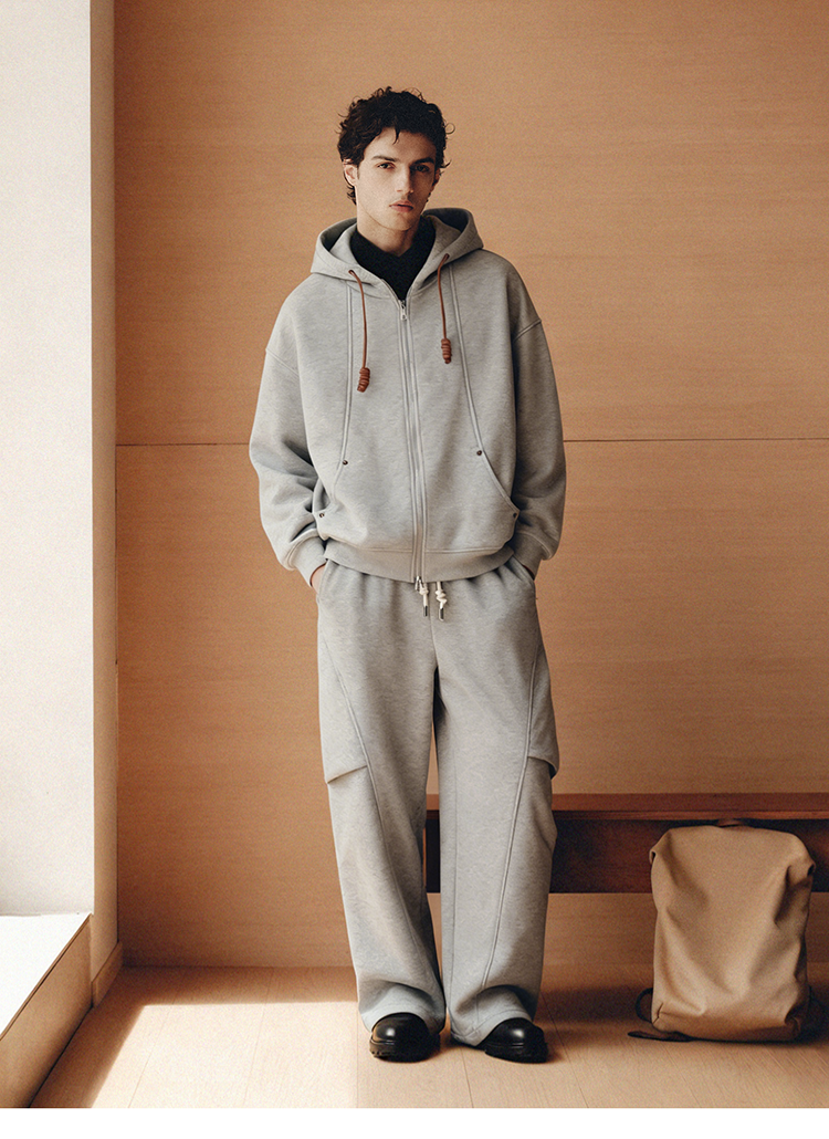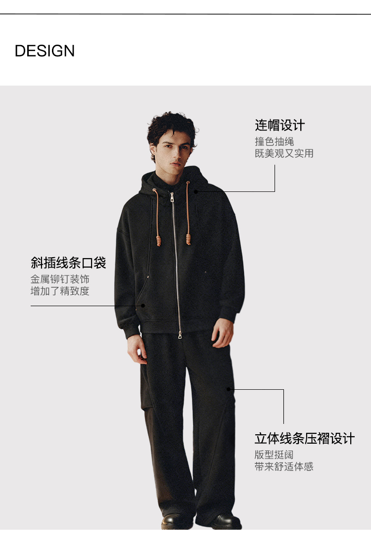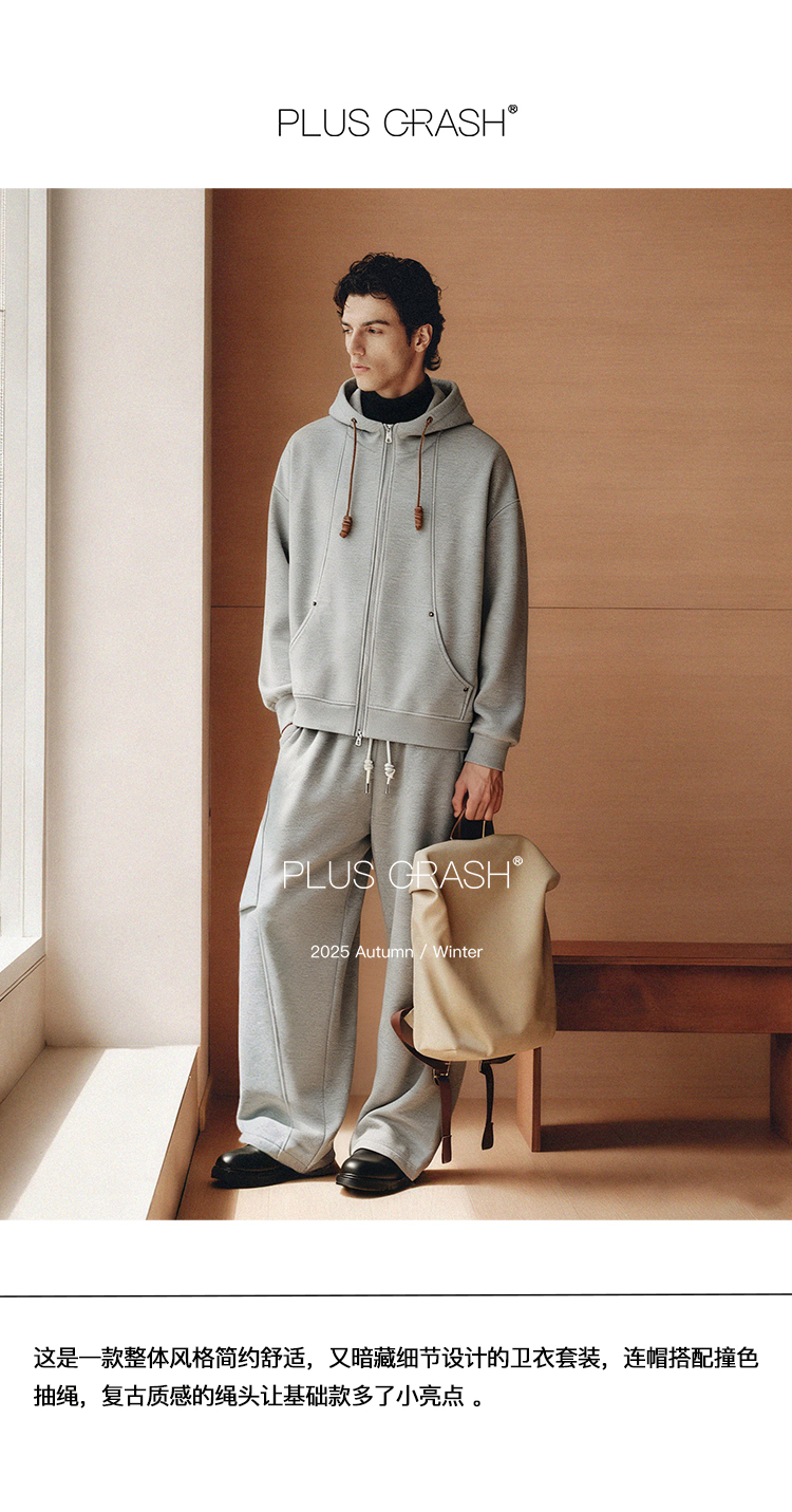 PLUS CRASH冬季加厚绒保暖卫衣卫裤男女同款多结构抽褶设计感套装