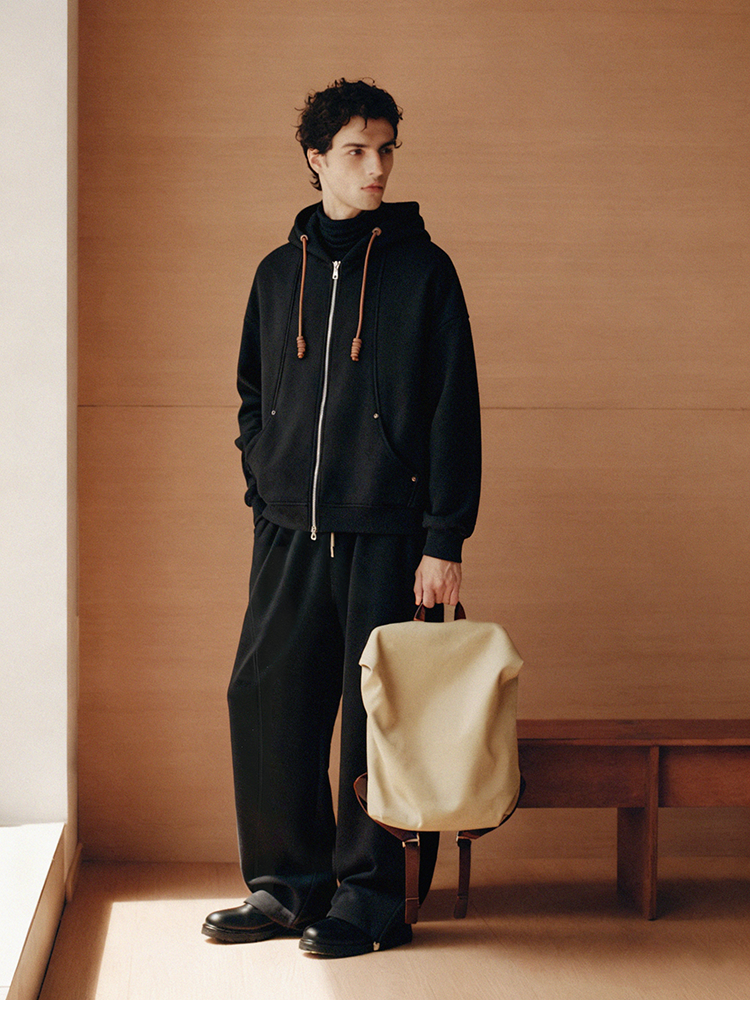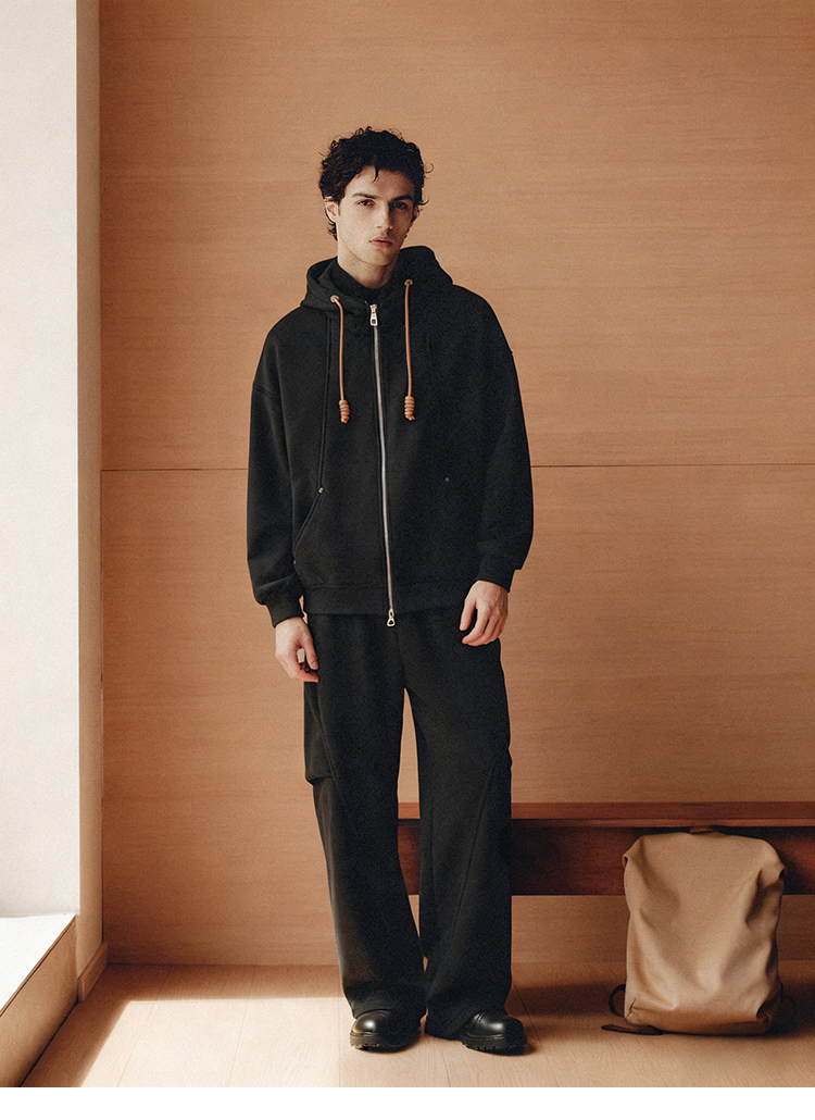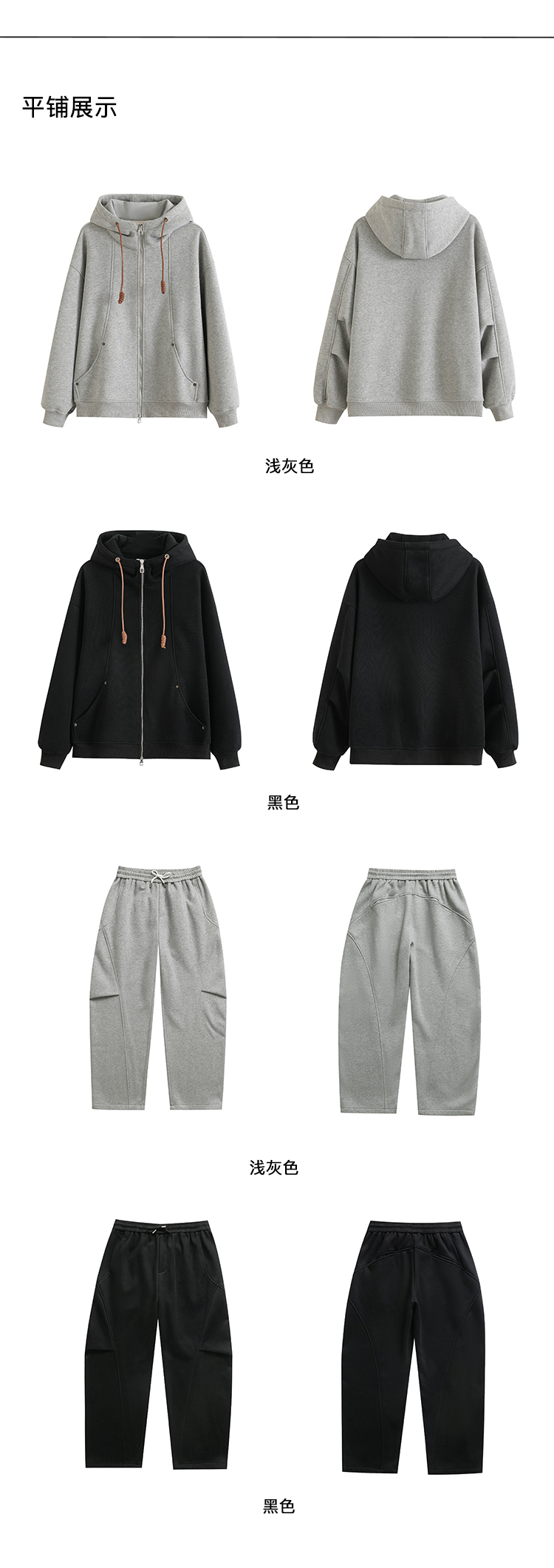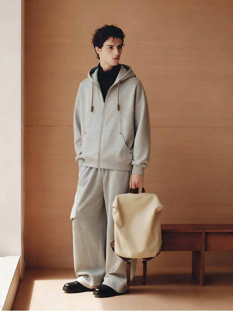 PLUS CRASH冬季加厚绒保暖卫衣卫裤男女同款多结构抽褶设计感套装