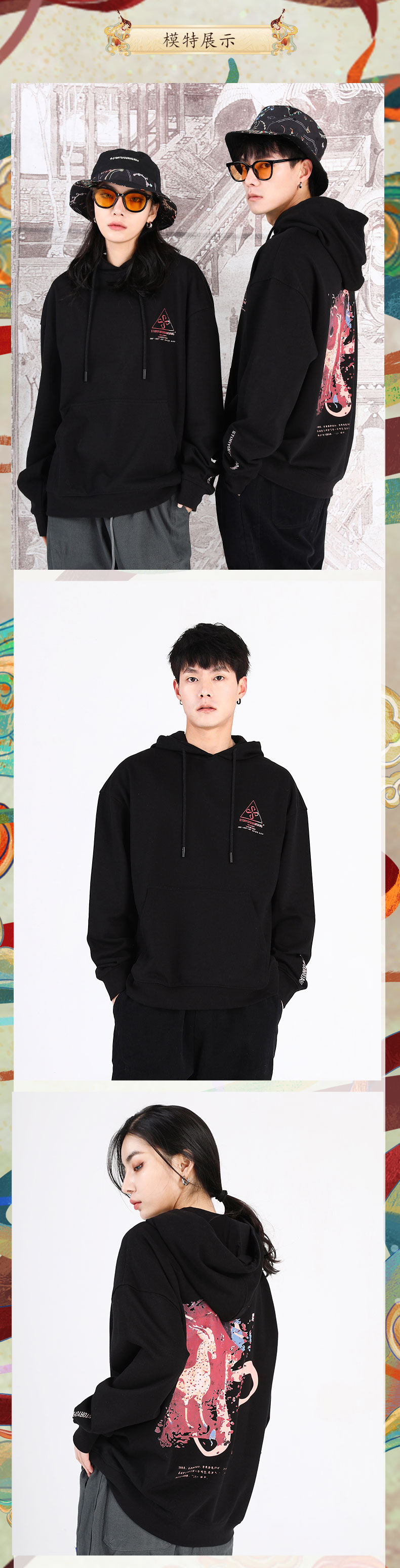 敦煌故事消逝九色鹿情侣卫衣男女秋冬款宽松国潮棉