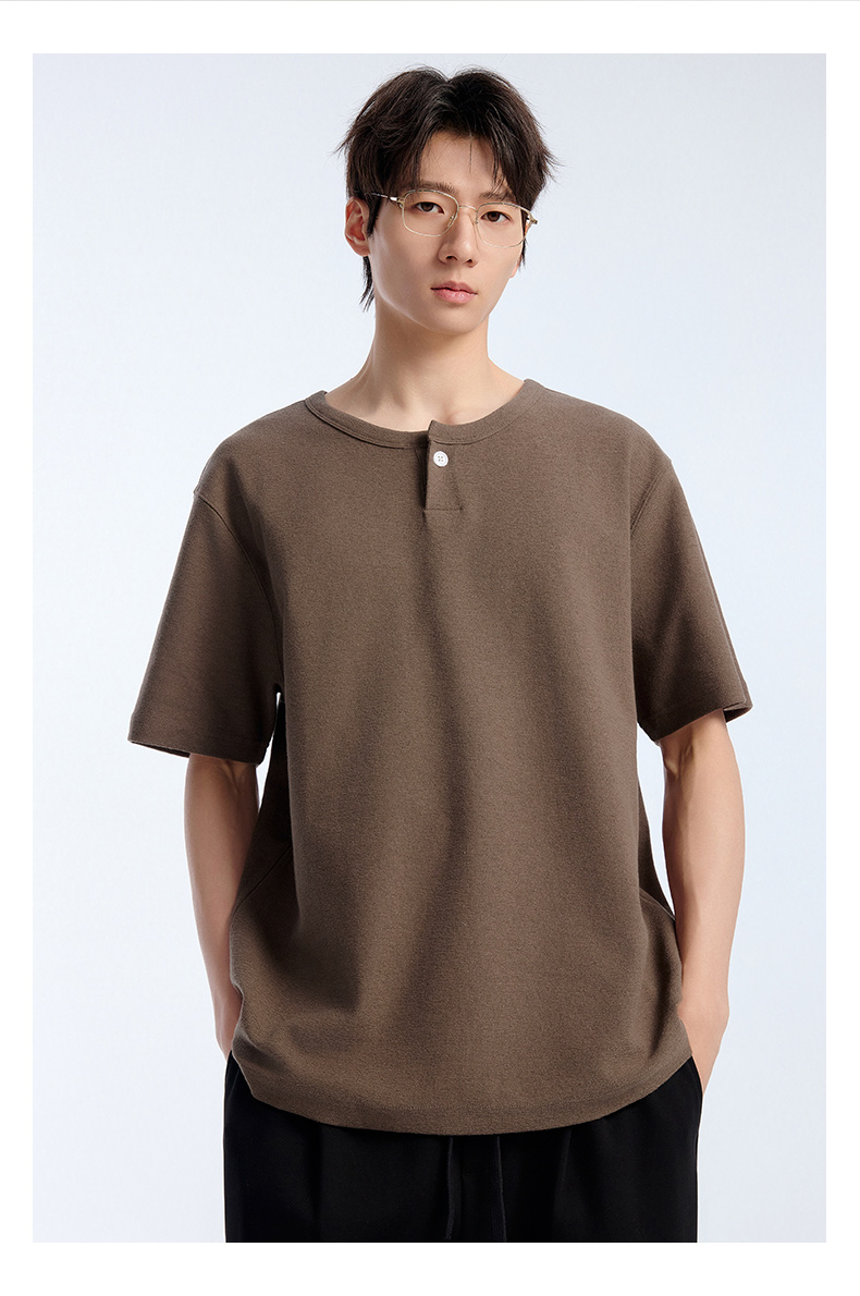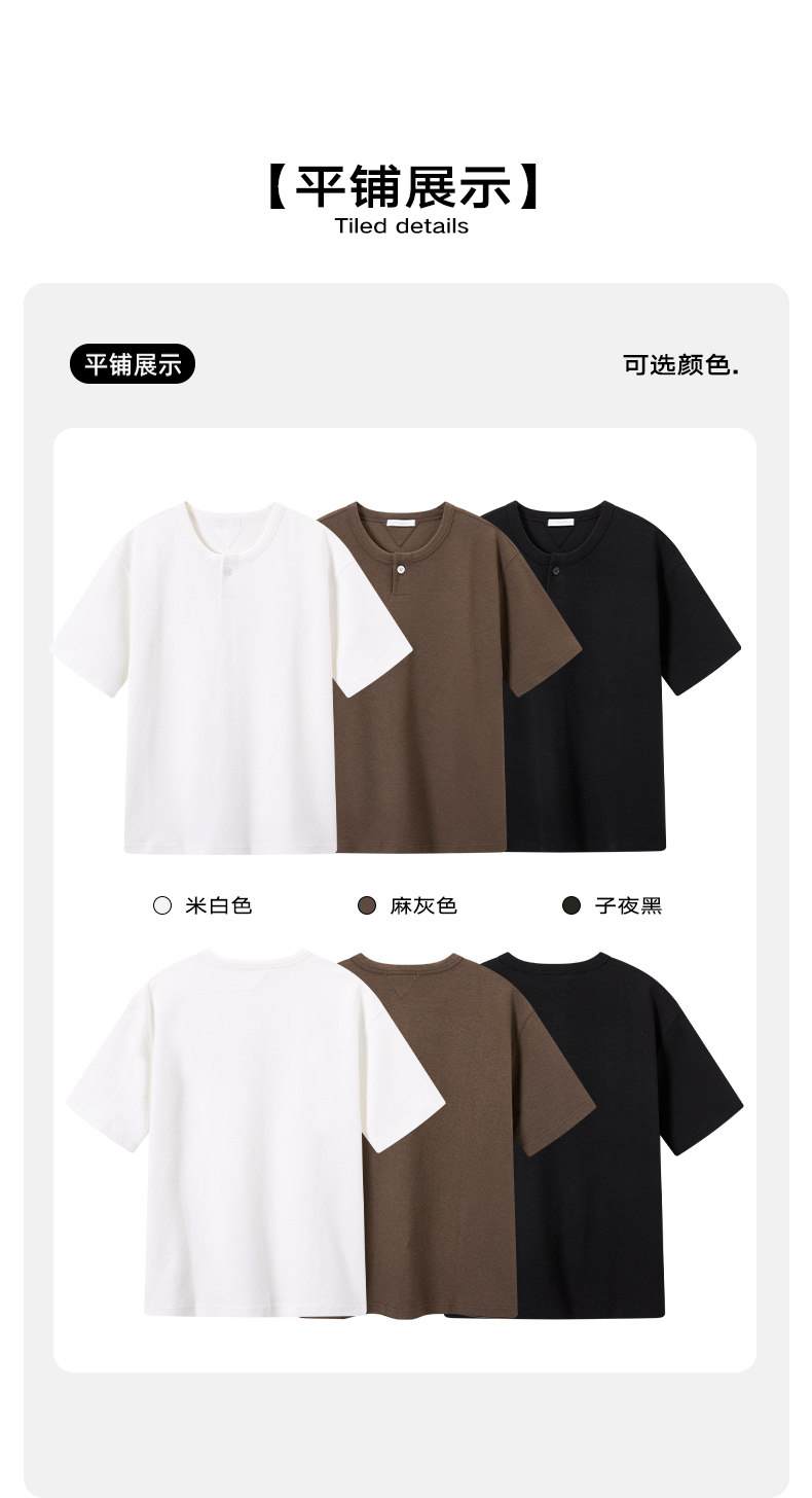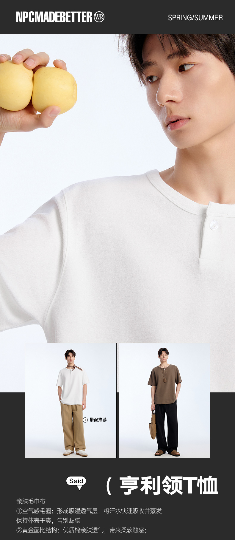 NPC潮牌立体剪裁亨利领纯色短袖T恤棉混纺毛巾布透气春NP61TE15