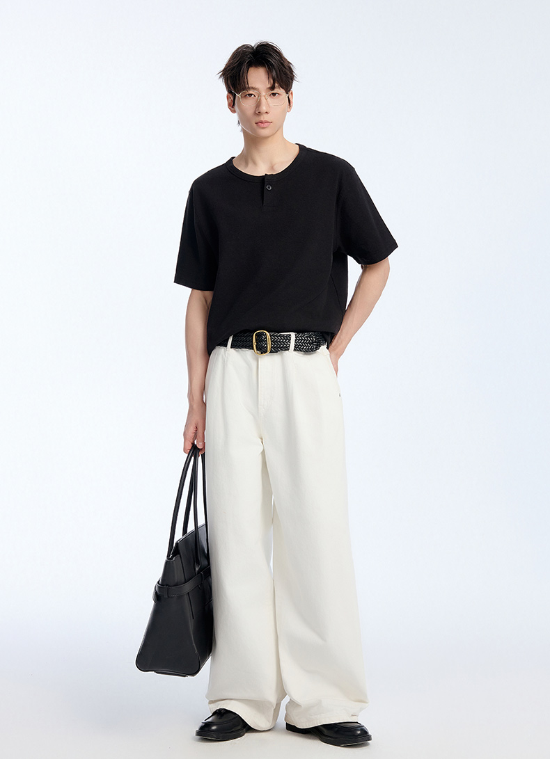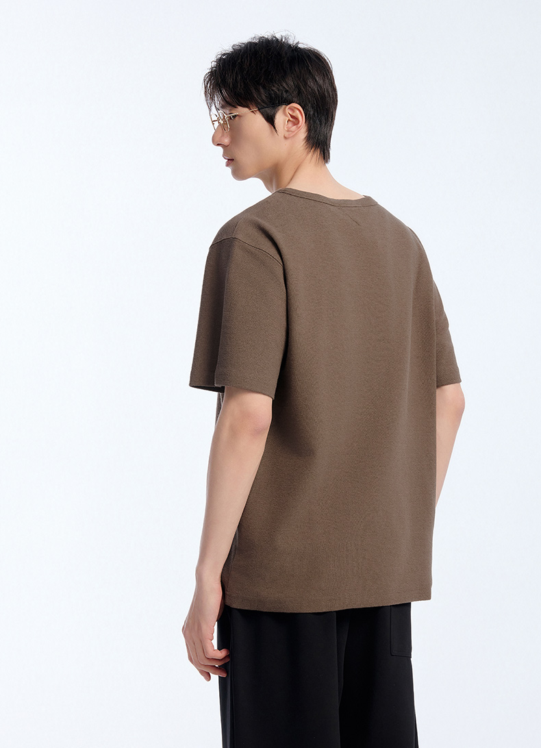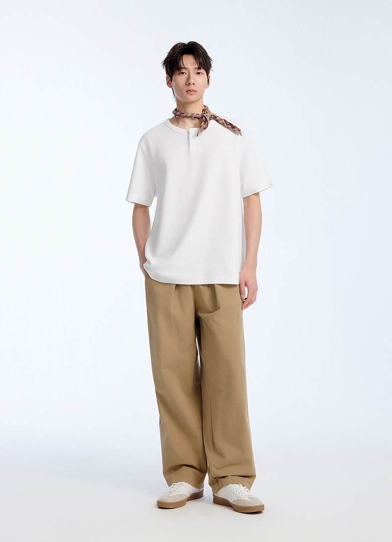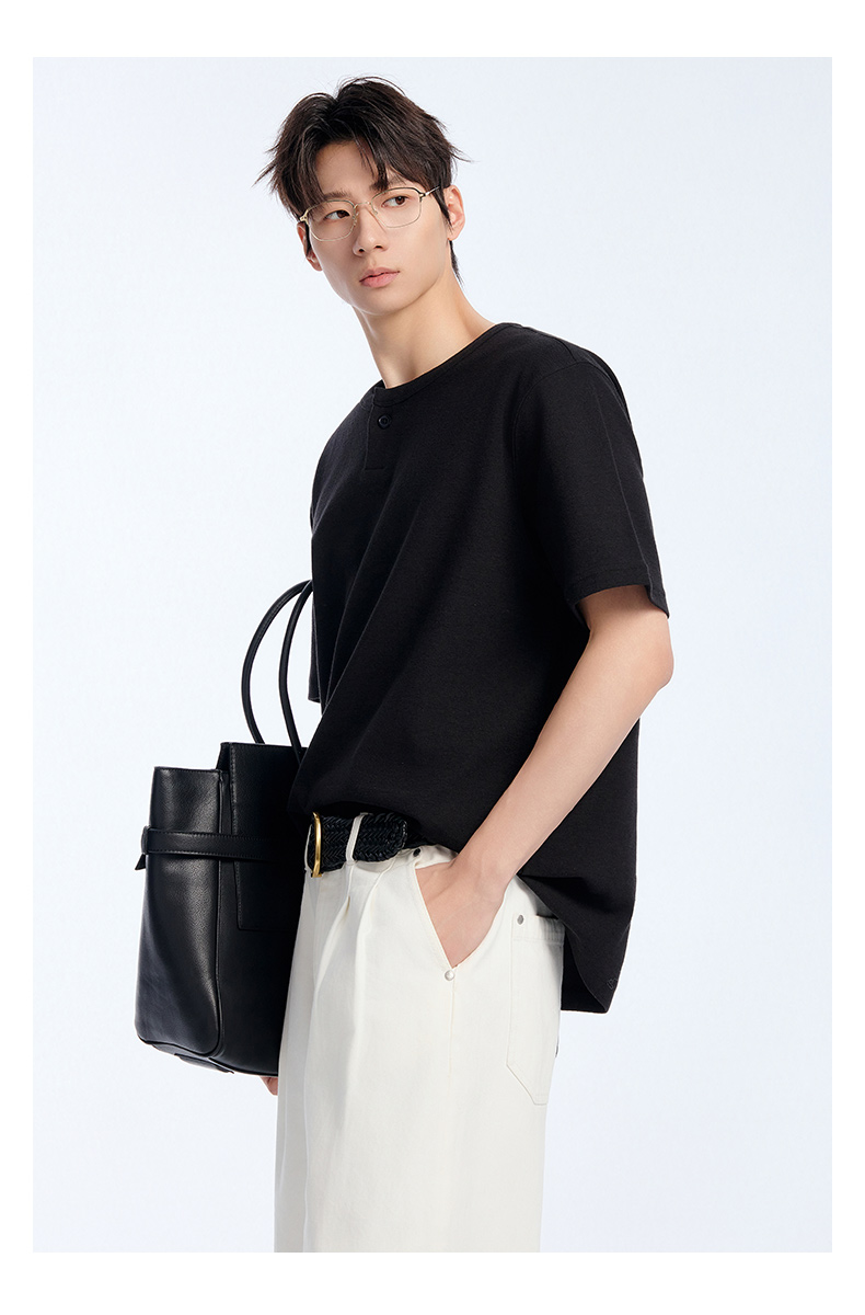 NPC潮牌立体剪裁亨利领纯色短袖T恤棉混纺毛巾布透气春NP61TE15
