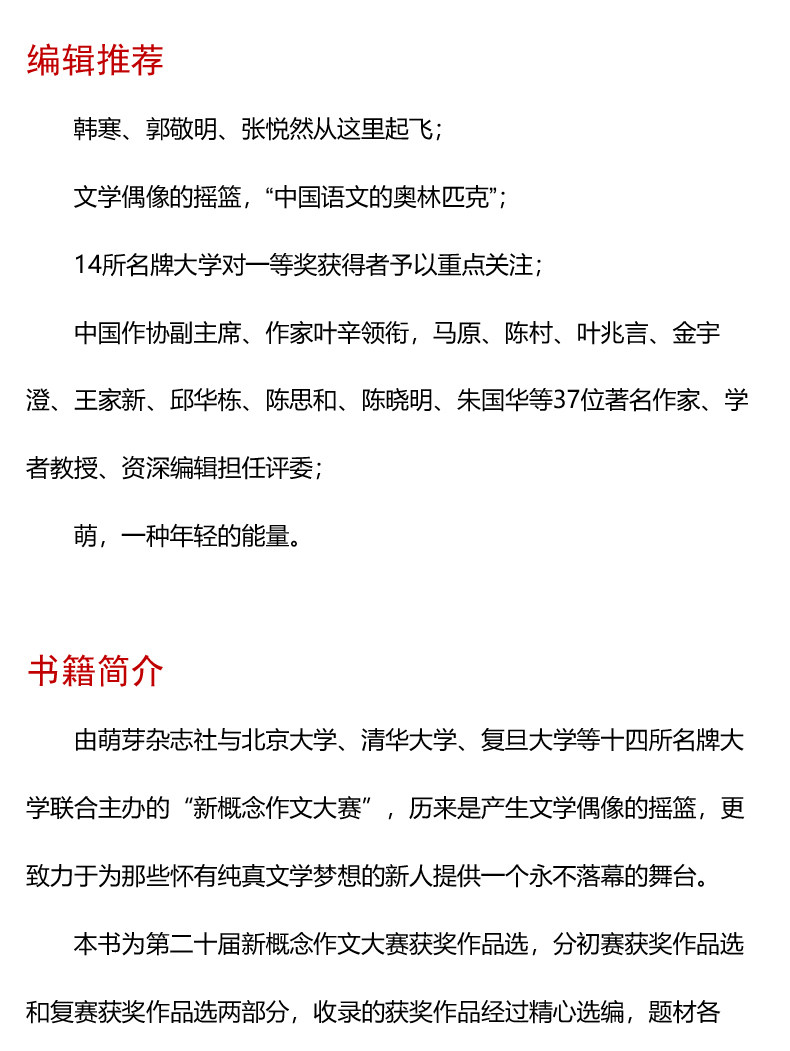 萌20 “ONE·一个杯”第20届全国新概念作文大赛获奖作品选 萌芽杂志社授权