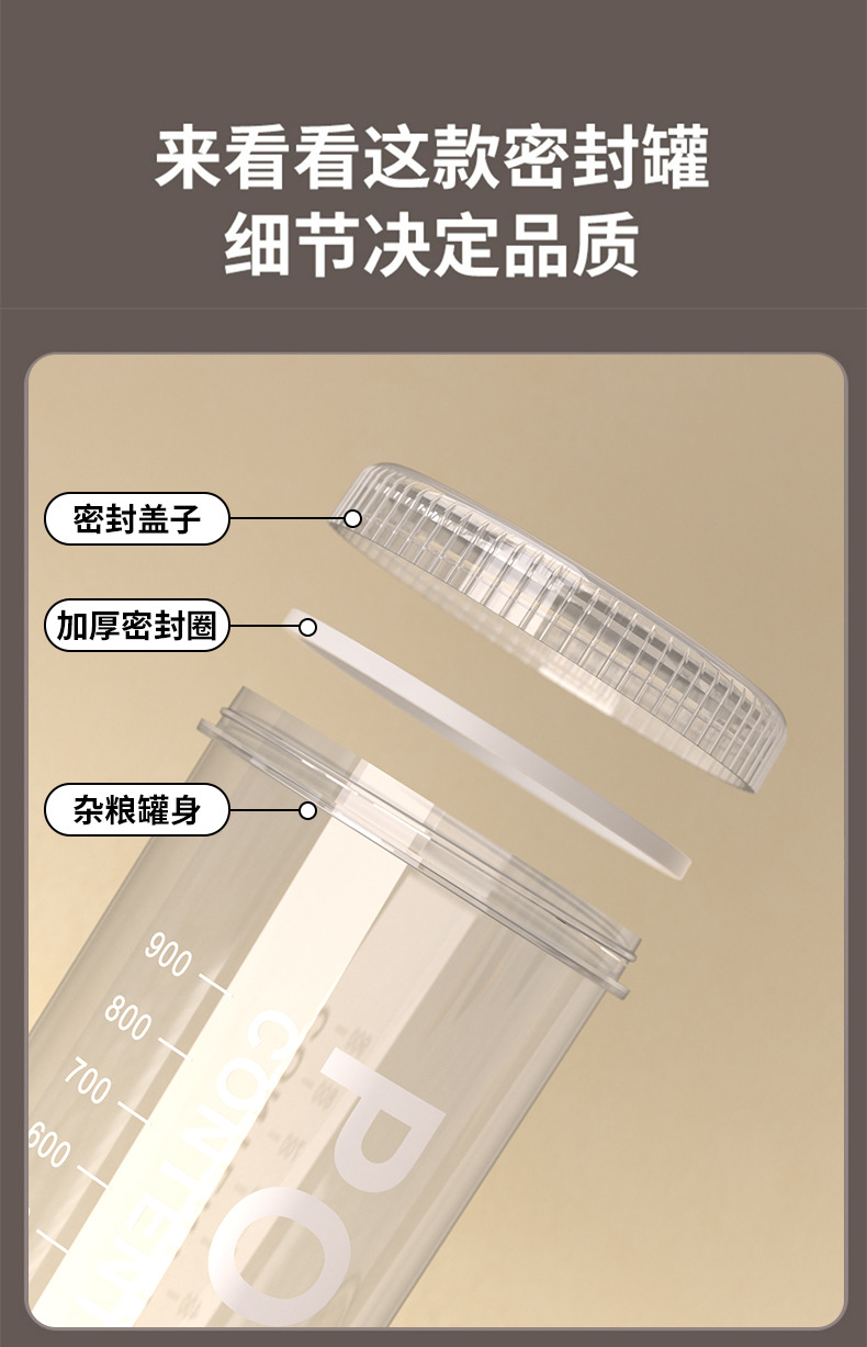 严选密封罐 食品级储存收纳盒透明塑料厨房香料豆子坚果五谷杂粮储物罐1个