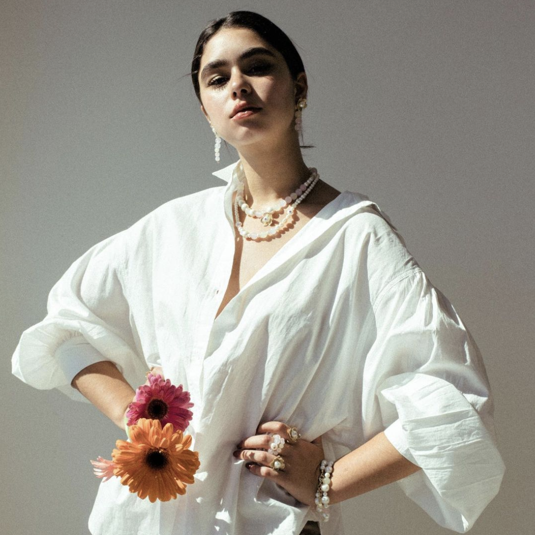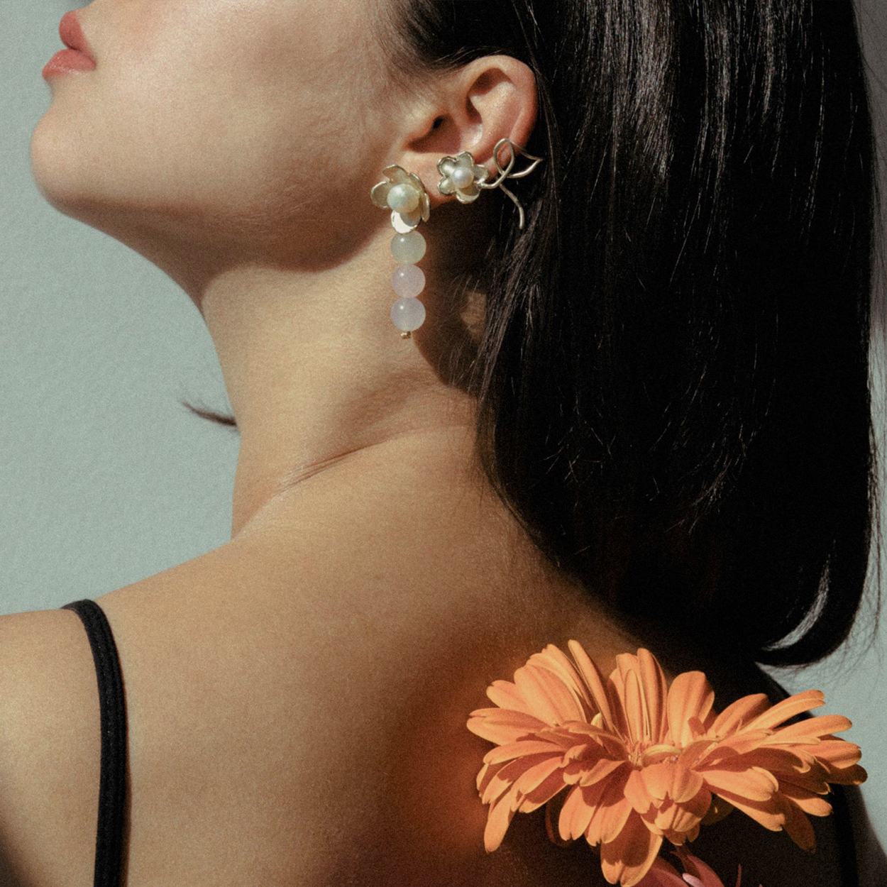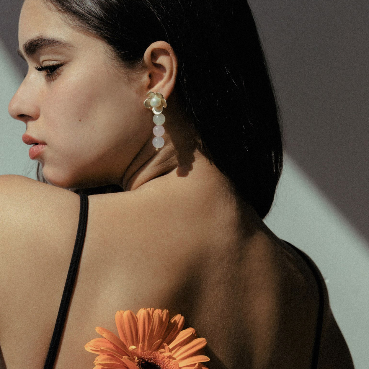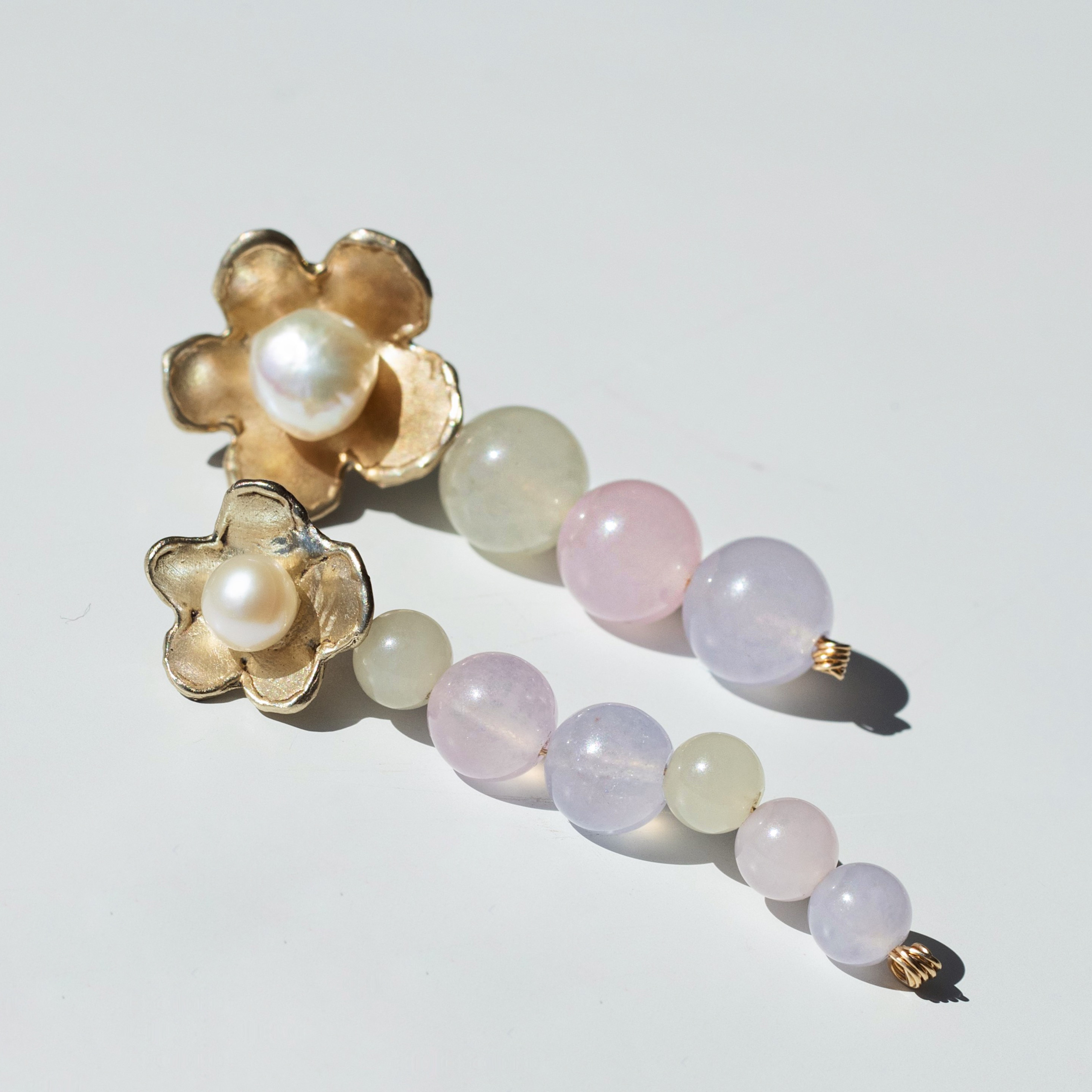 北京仓|ANITA BERISHA-Pastel Daisies-花朵 玉石 珍珠 耳环(不对称)[美国设计师]