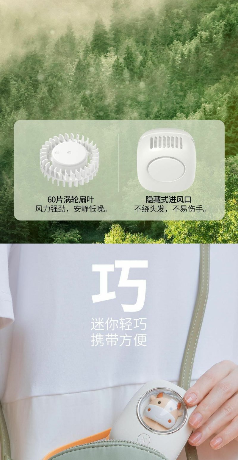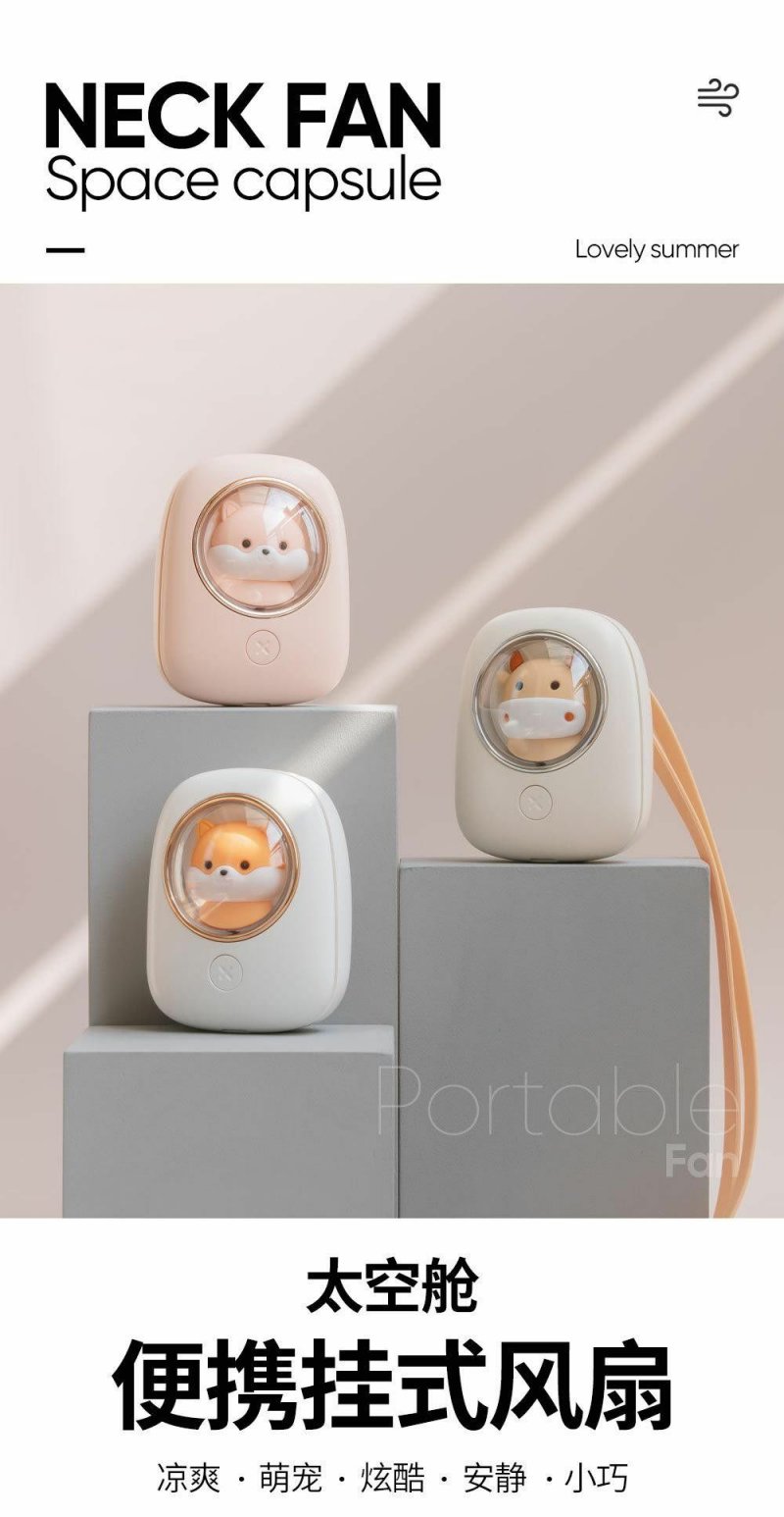 太空舱挂脖小风扇便携随身儿童迷你可爱usb手持夜灯萌宠挂式风扇