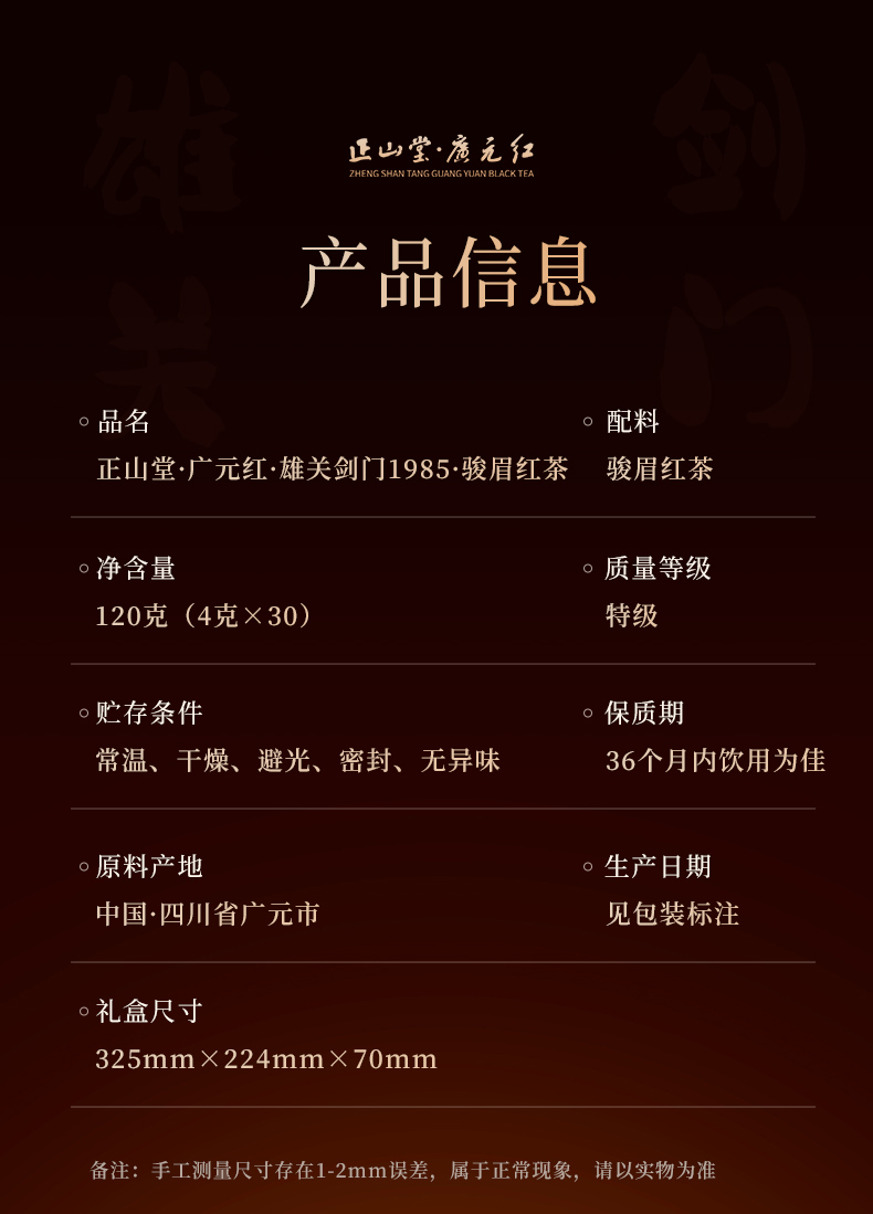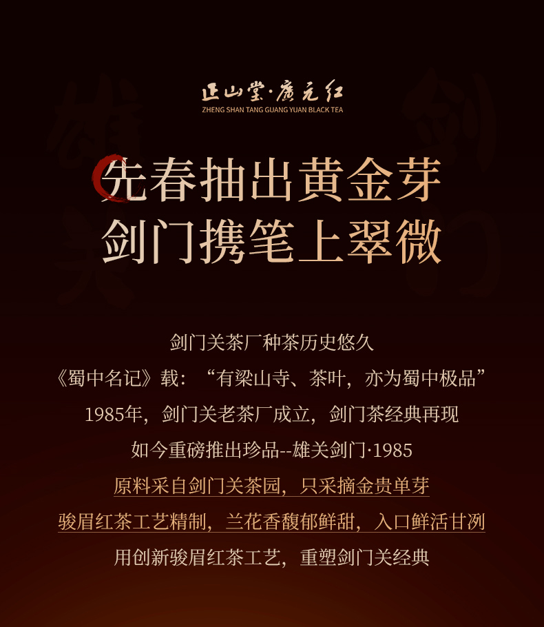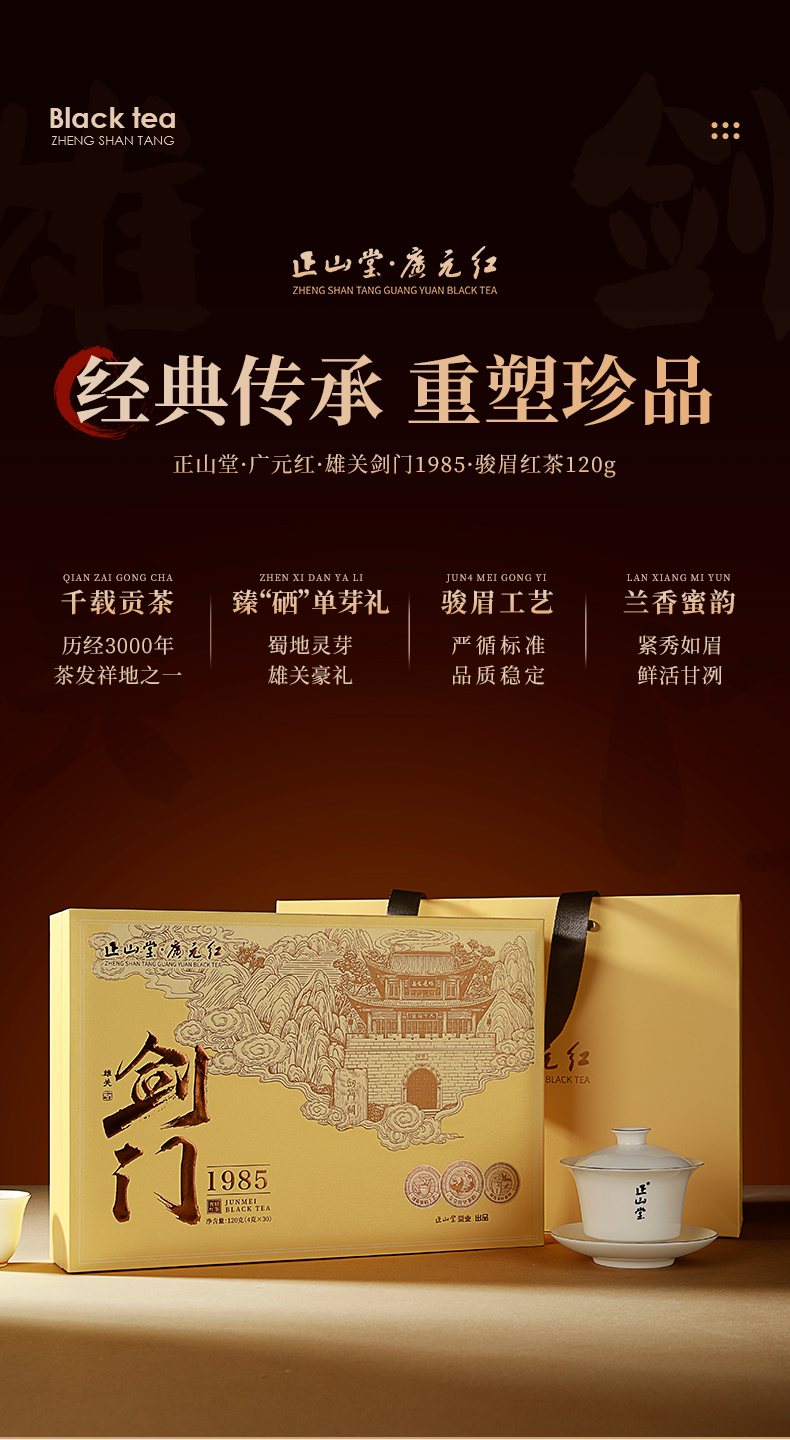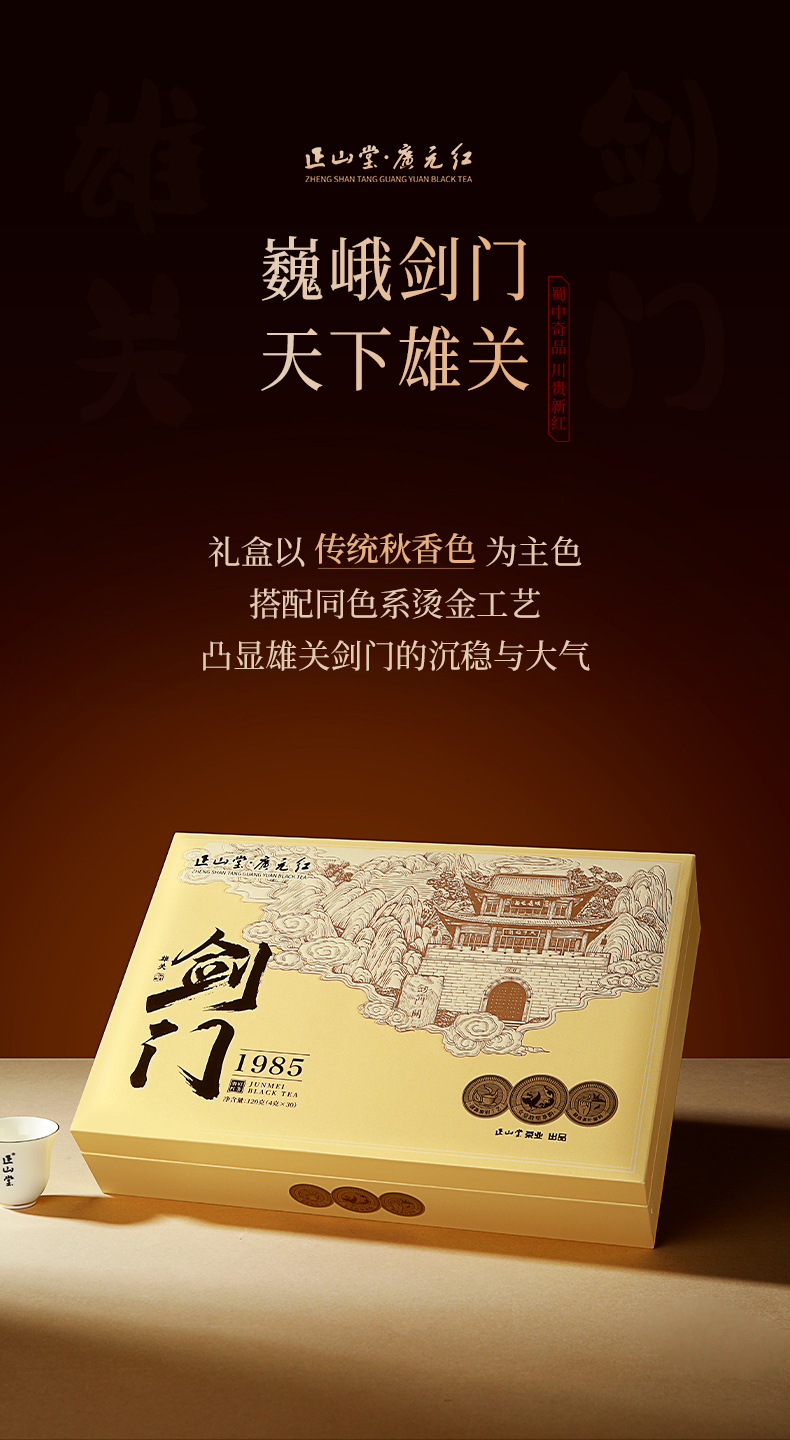 正山堂广元红 剑门1985礼盒装 正宗特级珍稀单芽红茶叶送礼长辈120g