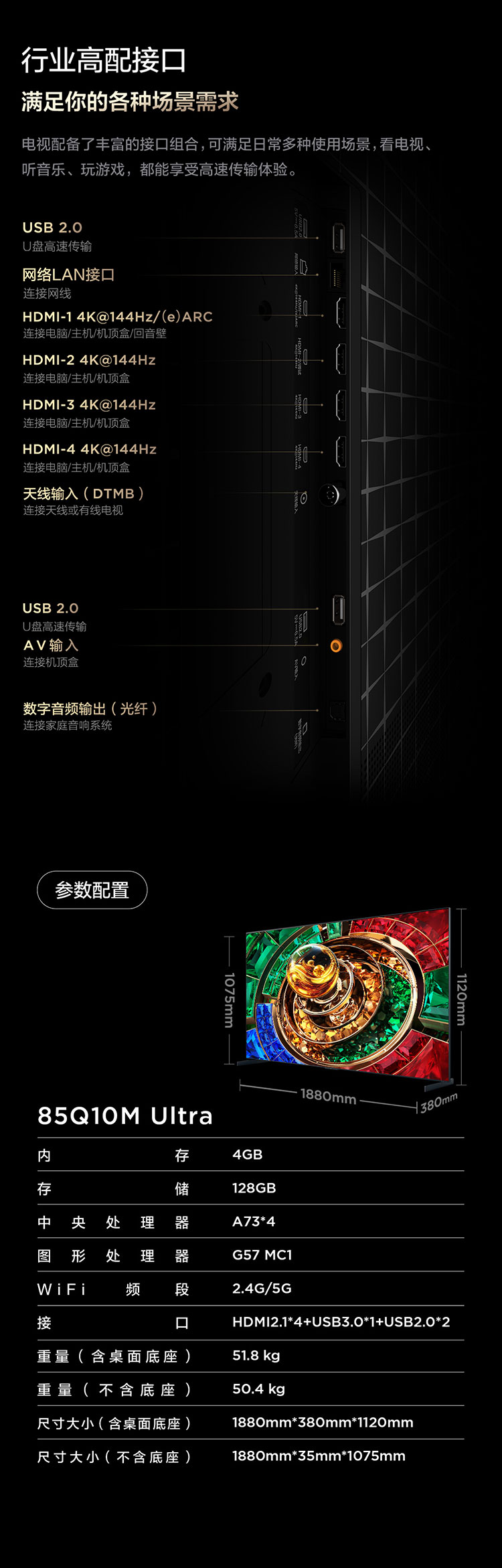 【新品上市】TCL电视 85Q10M Ultra 85英寸 RGB-Mini LED 超级蝶翼华曜屏 RGB万象分区 绚彩XDR 4000nits 超薄电视