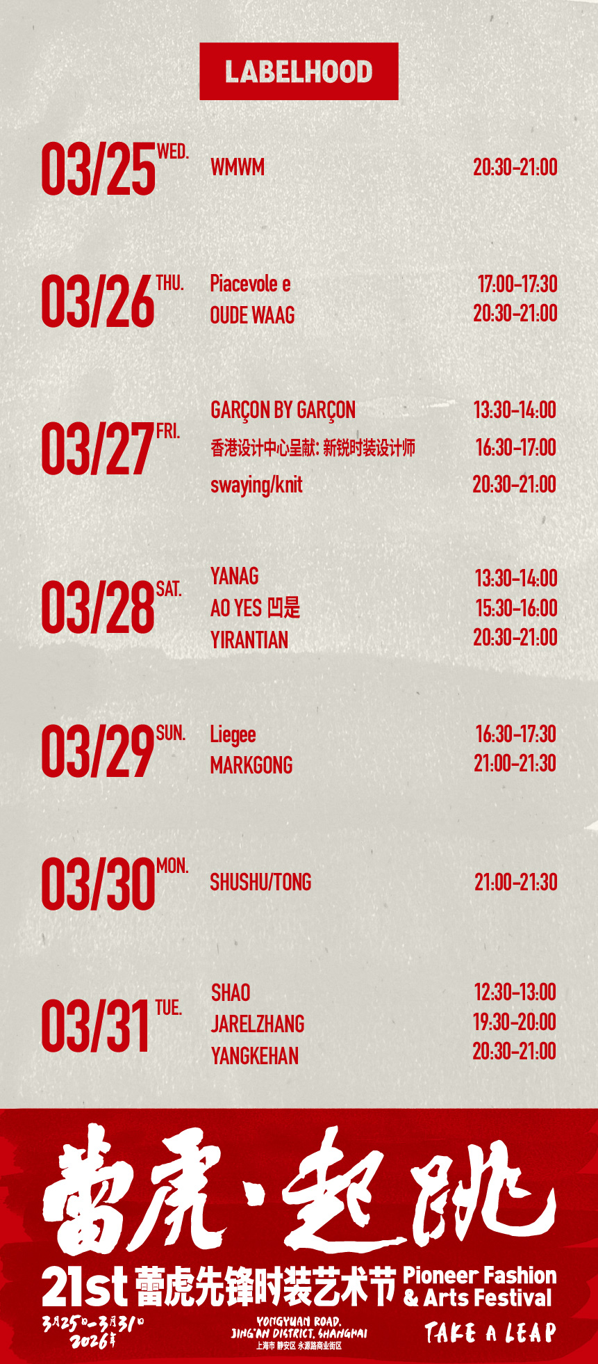 21th 蕾虎起跳-26AW秀票 Piacevole e 3月26日 17:00-17:30-PR