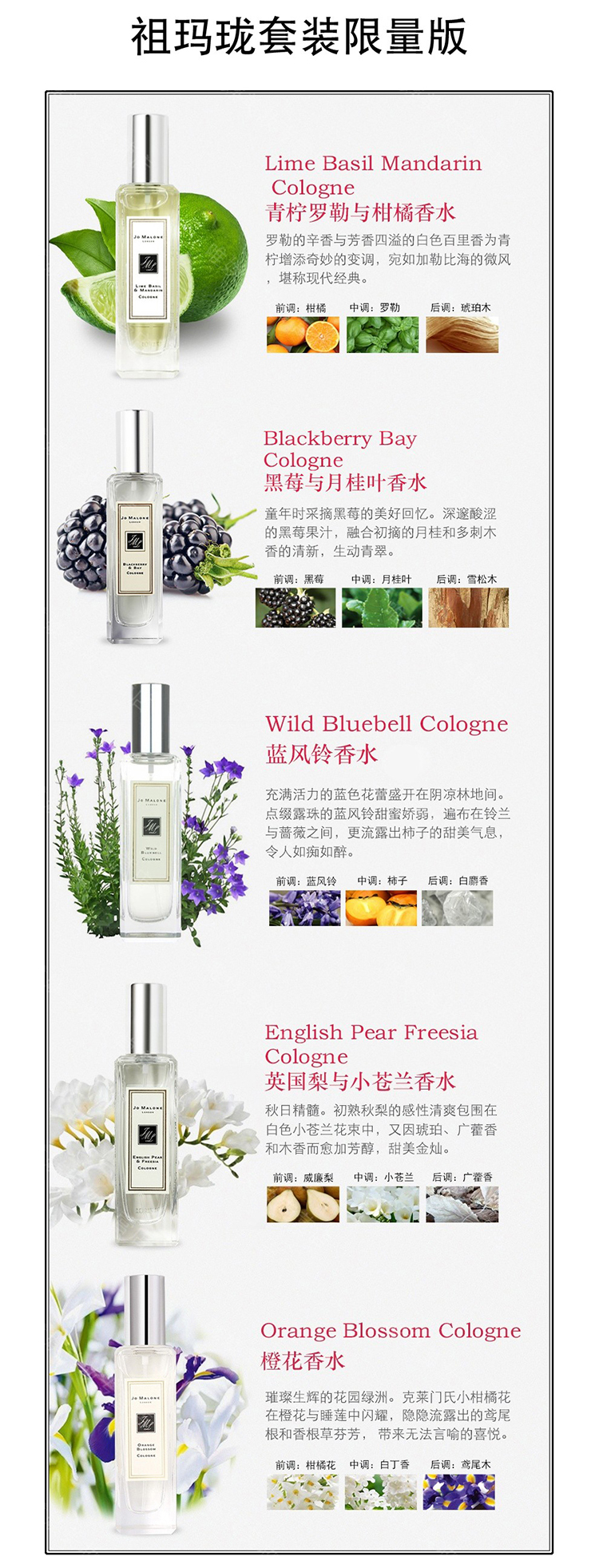 【祖玛珑香水五件套】祖玛珑香水 Jo Malone London | 蓝风铃+英国梨与小苍兰+黑莓与月桂叶+青柠罗勒与柑橘+橙花 持久留香五件套装 9ml*5