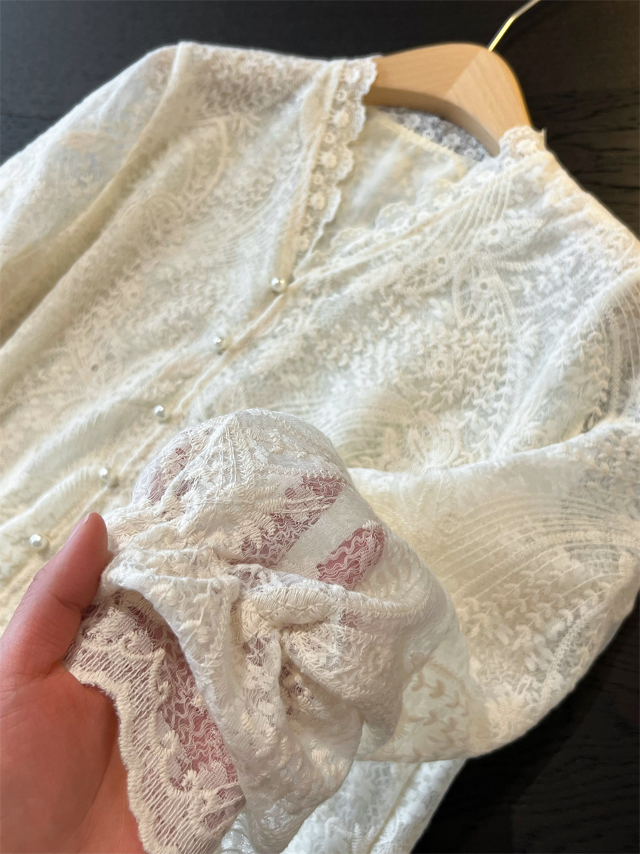 衬托修长脖颈波浪花边隐绰生香,更增添了女性柔美~