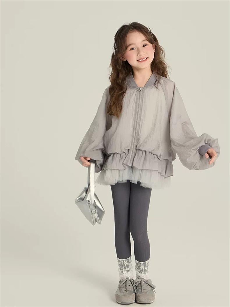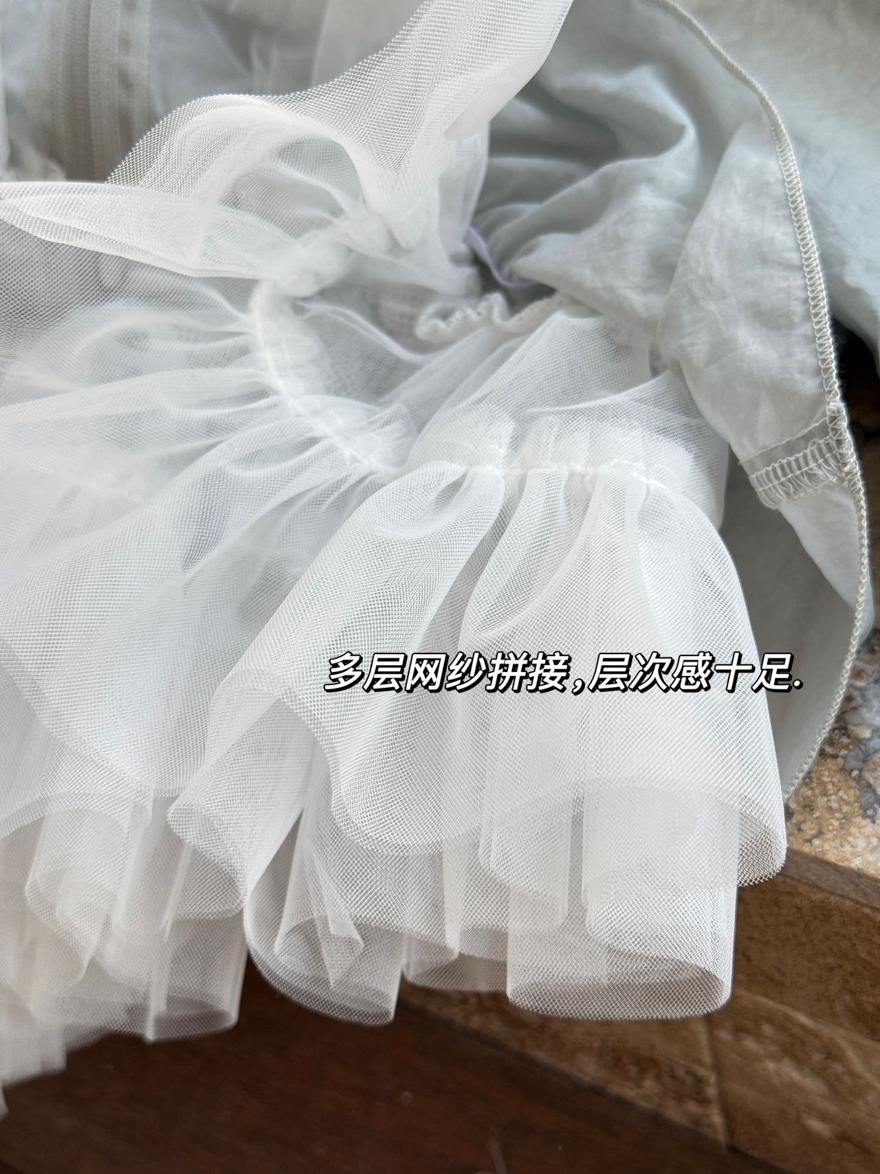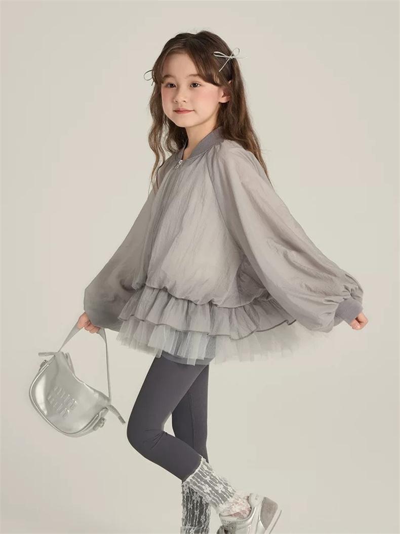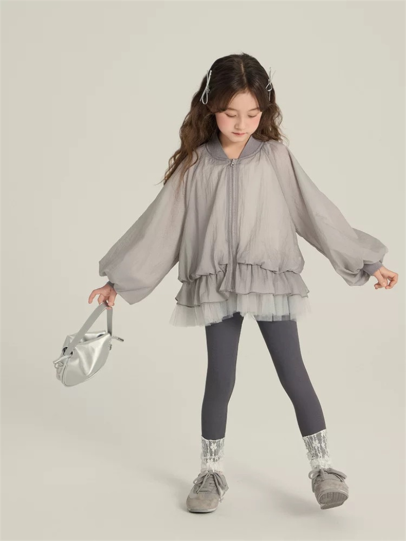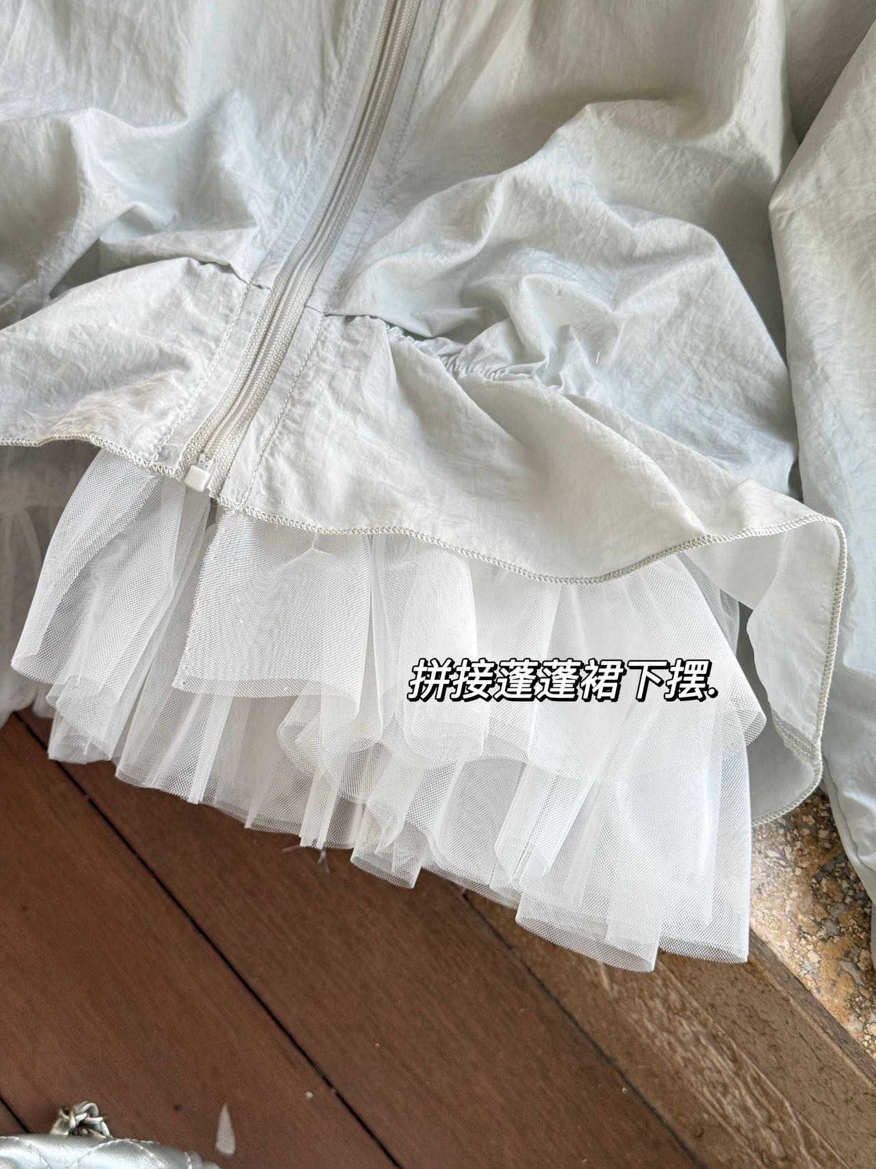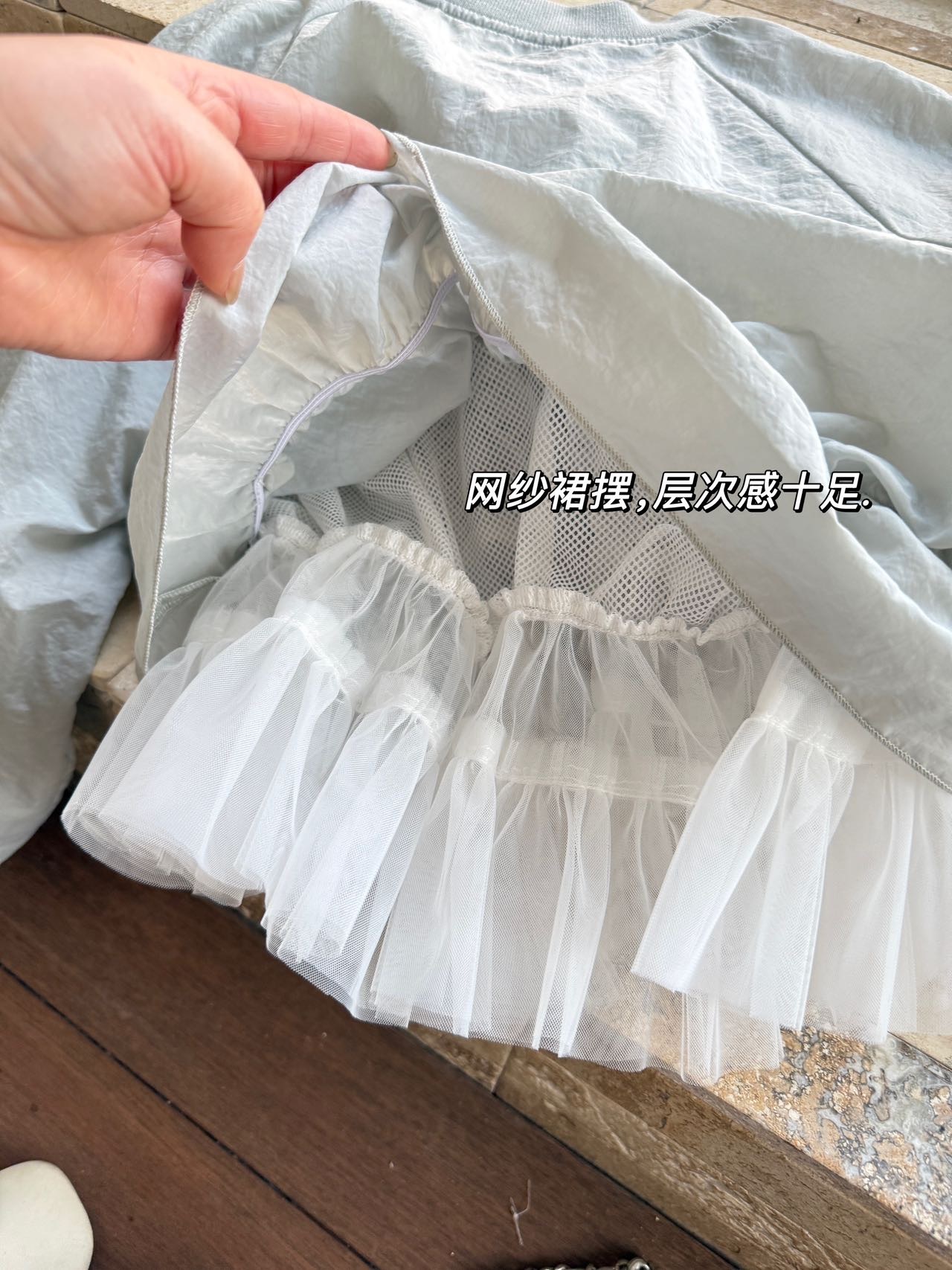【轻纱絮语 | 以花苞为灵感,邂逅夏日浪漫】110-160❗️某猫同款,绝对的商超品质,SG超美花苞裙摆儿童外套❗️ 吊打市面同款❌重工打造,凉感轻纱泡泡袖棒球服,诠释夏日的轻盈美学❗️ ✔️薄纱邂逅立体剪裁的温柔,刚柔并济的层次感,行走之间摇曳生姿 ✔️ 下摆的「花苞裙式」设计是整件外套的点睛之笔!步履晃动时裙摆随风泛起,仙气飘飘 ✔️立体泡泡袖,宽松廓形不挑身材,胖瘦宝宝都可驾驭❗️
