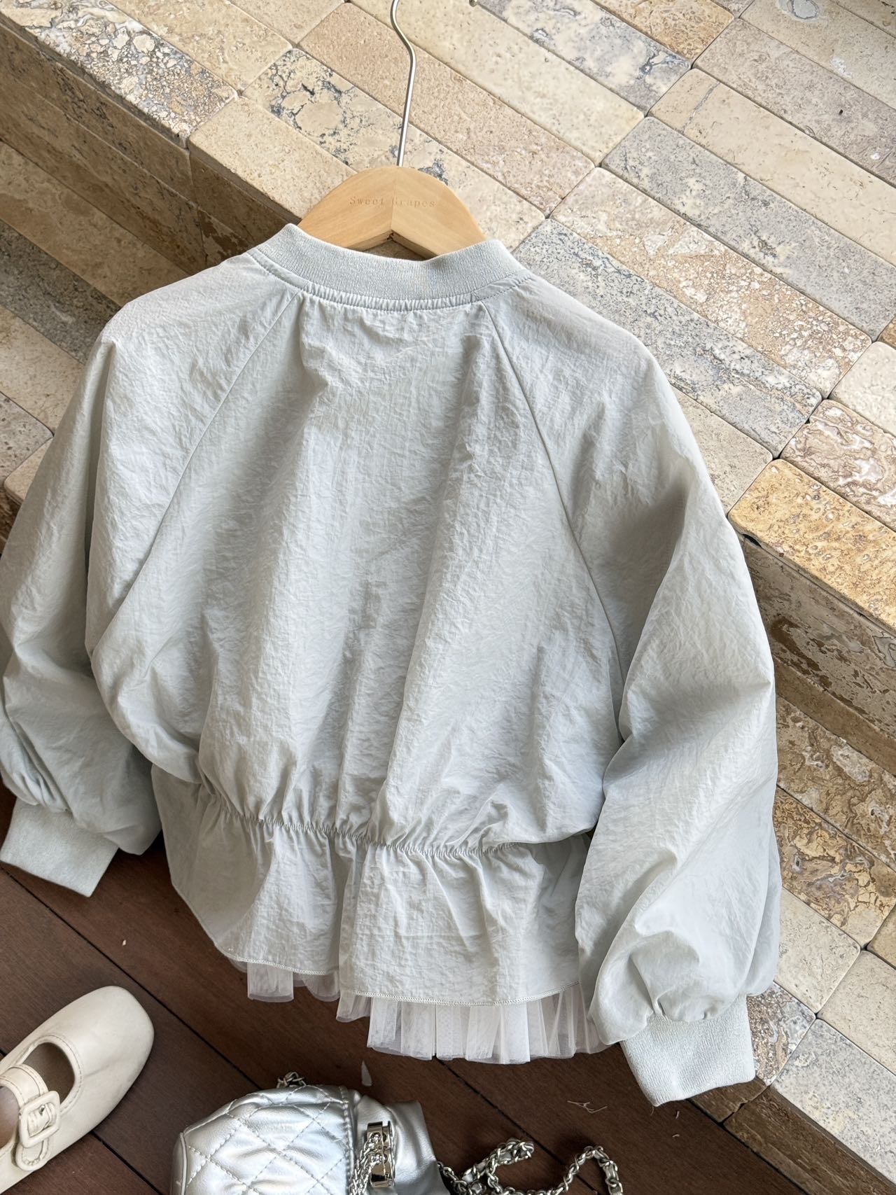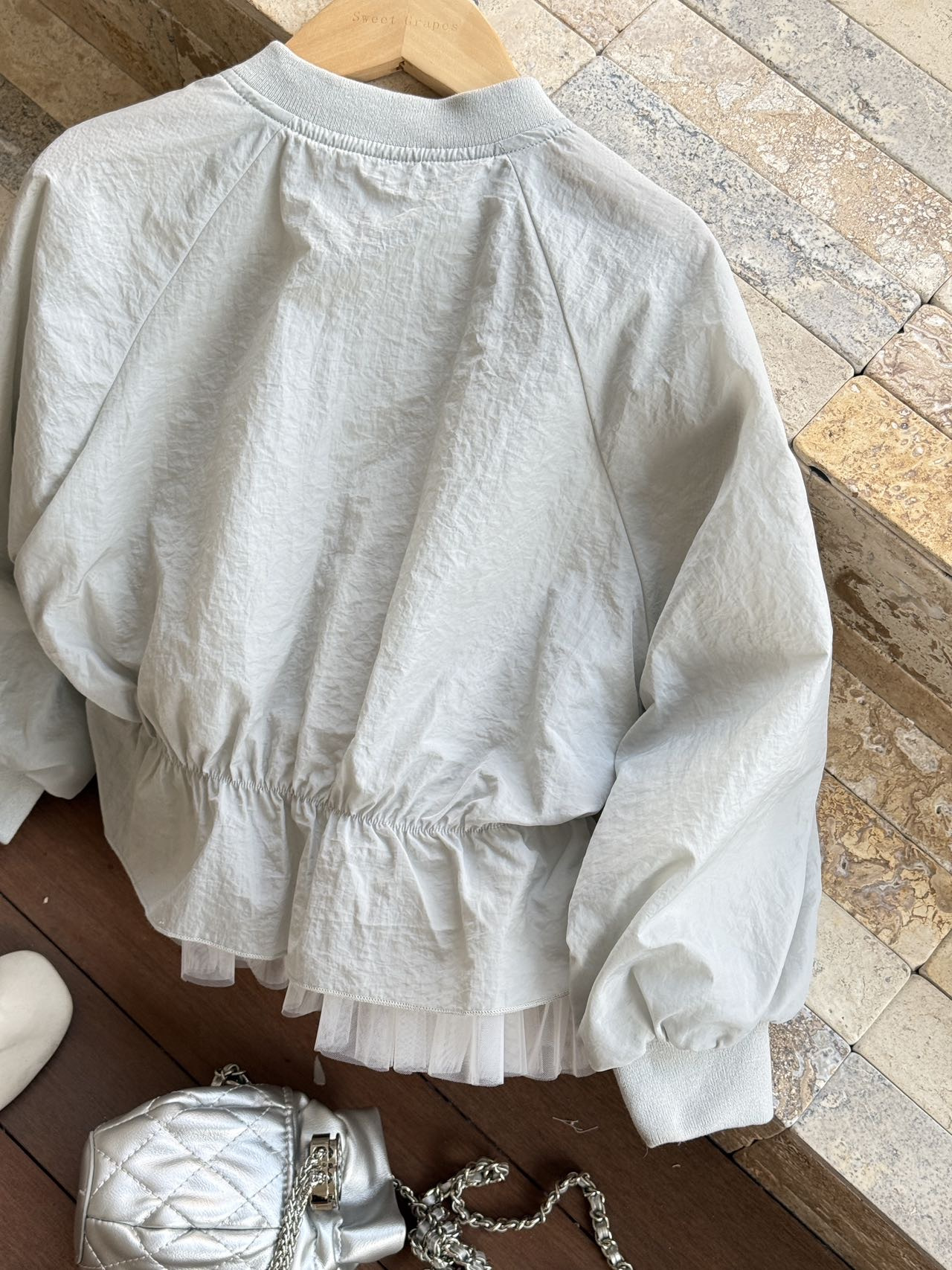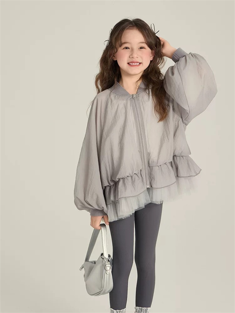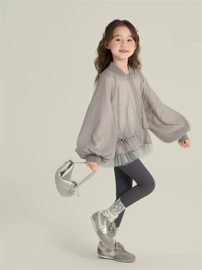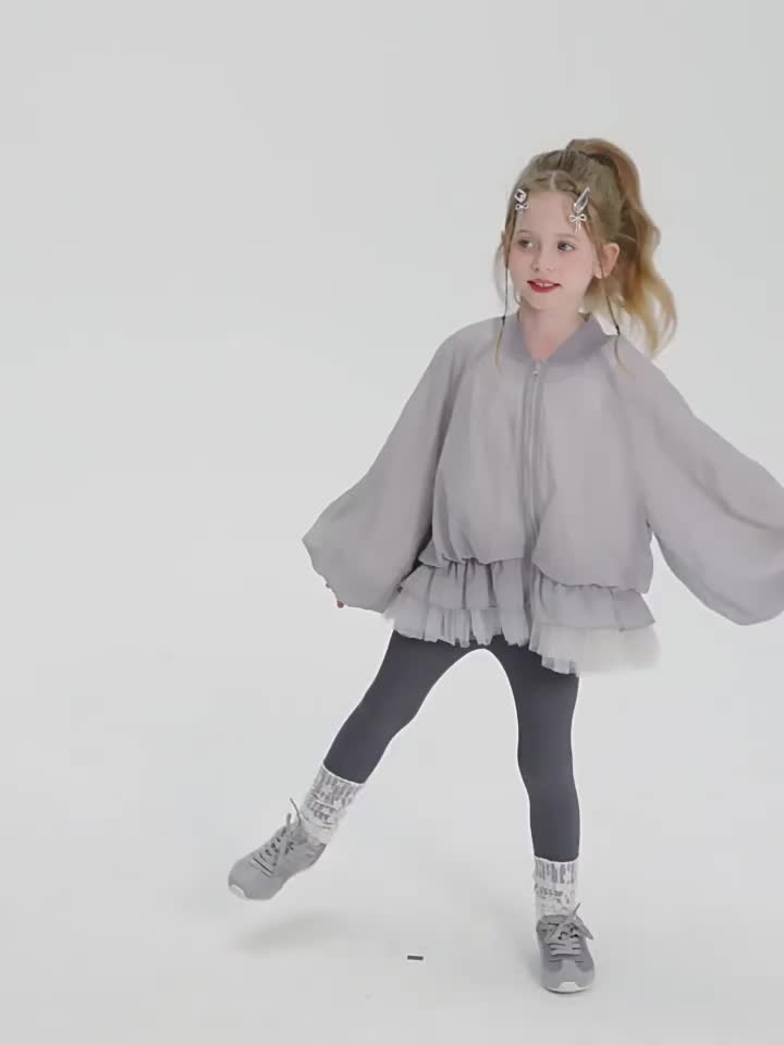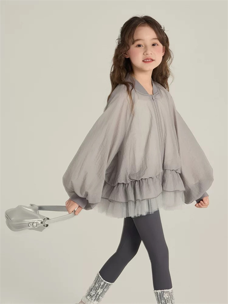 【轻纱絮语 | 以花苞为灵感,邂逅夏日浪漫】110-160❗️某猫同款,绝对的商超品质,SG超美花苞裙摆儿童外套❗️ 吊打市面同款❌重工打造,凉感轻纱泡泡袖棒球服,诠释夏日的轻盈美学❗️ ✔️薄纱邂逅立体剪裁的温柔,刚柔并济的层次感,行走之间摇曳生姿 ✔️ 下摆的「花苞裙式」设计是整件外套的点睛之笔!步履晃动时裙摆随风泛起,仙气飘飘 ✔️立体泡泡袖,宽松廓形不挑身材,胖瘦宝宝都可驾驭❗️