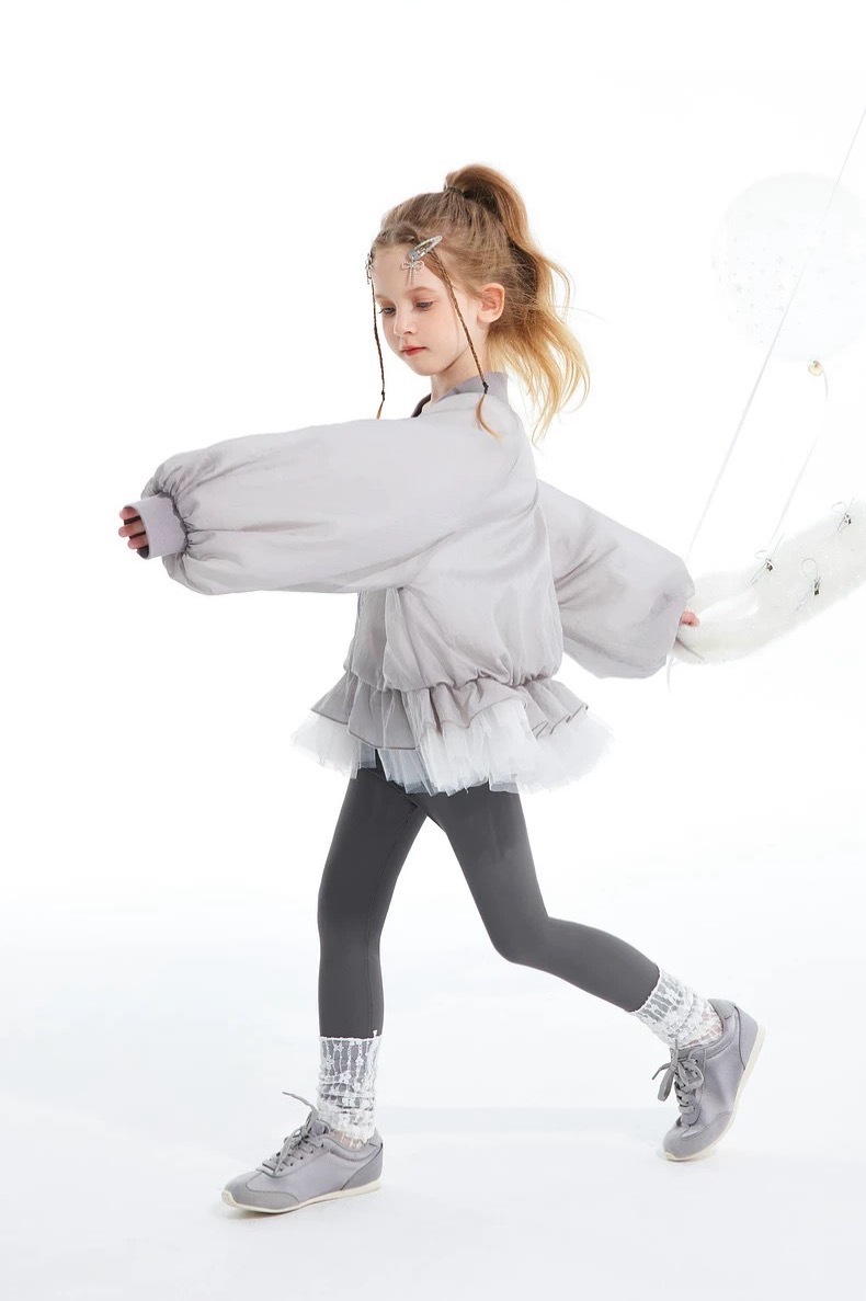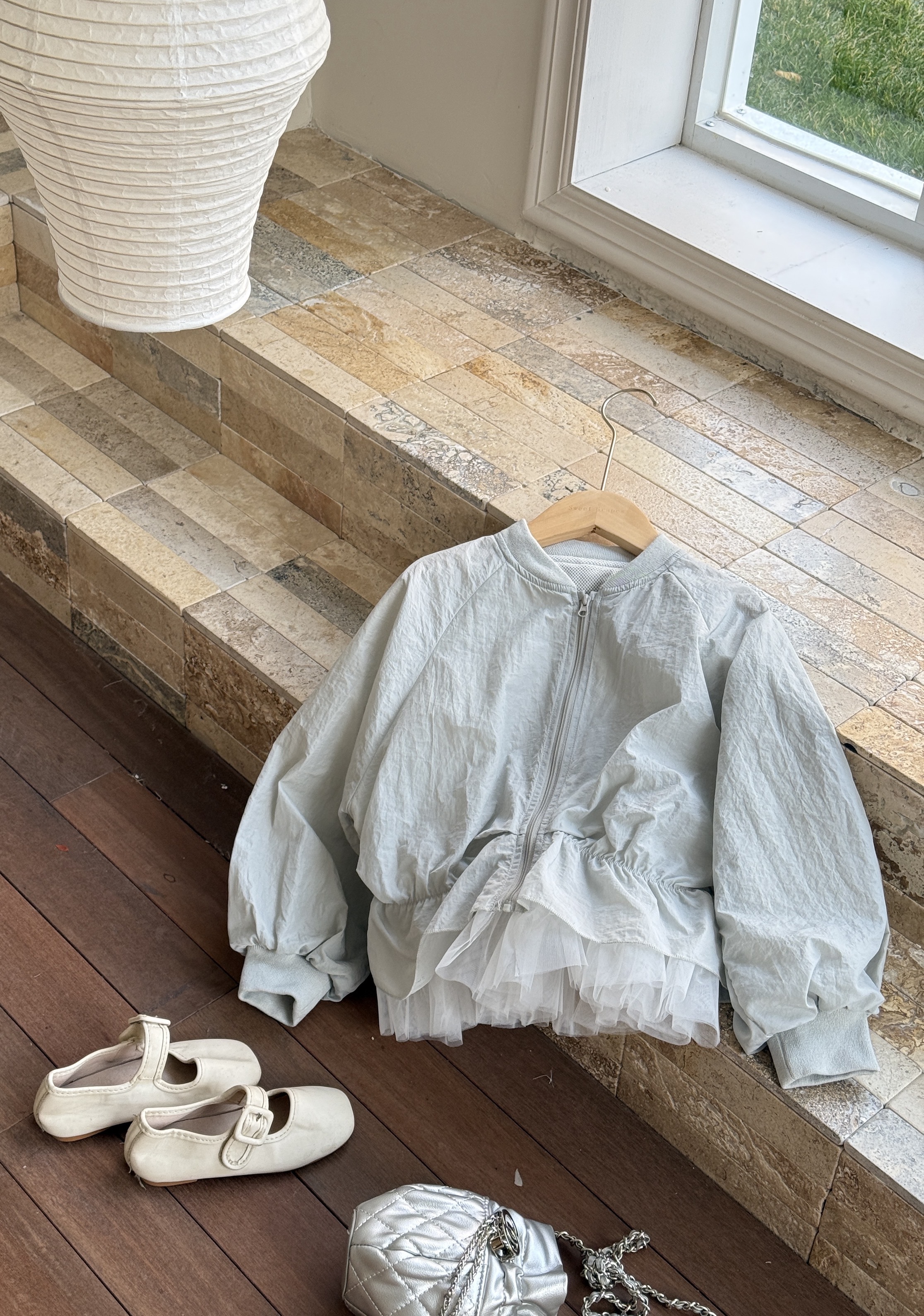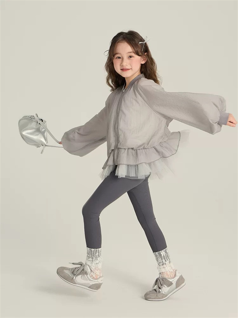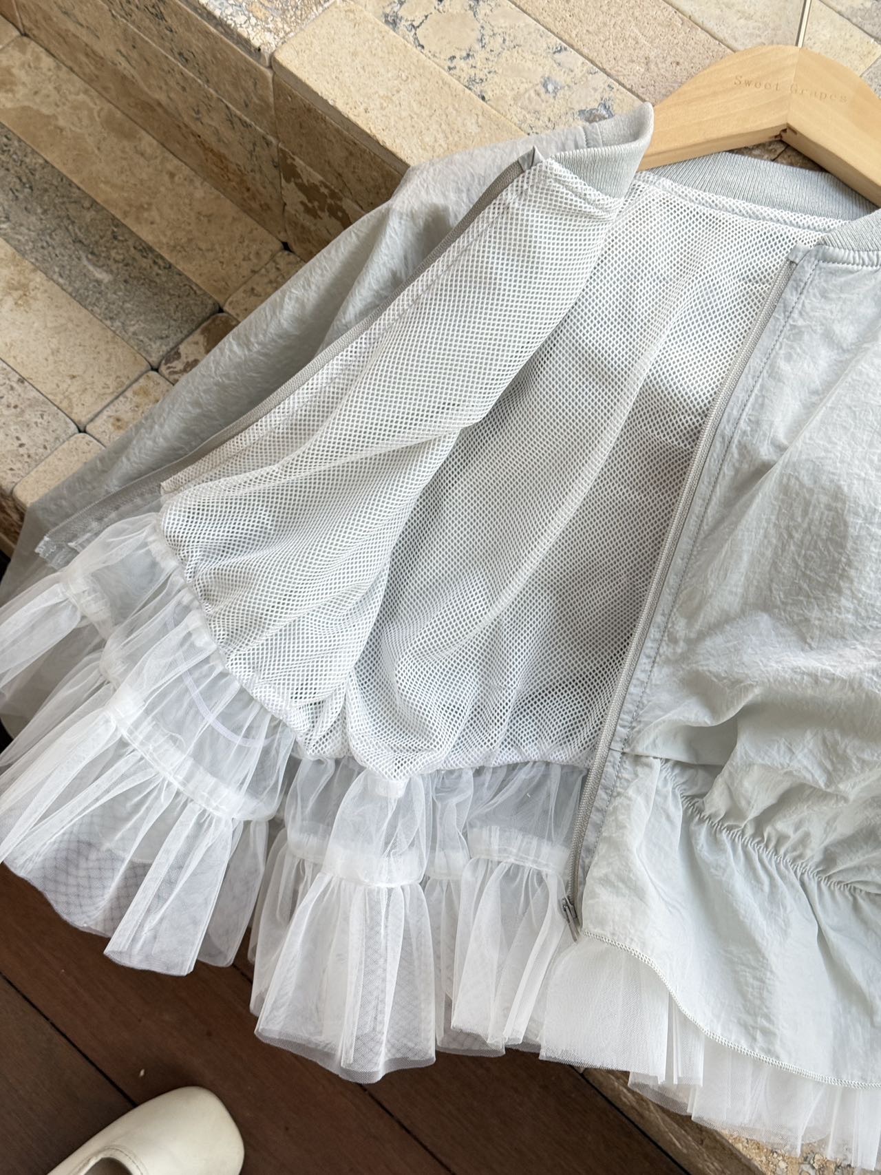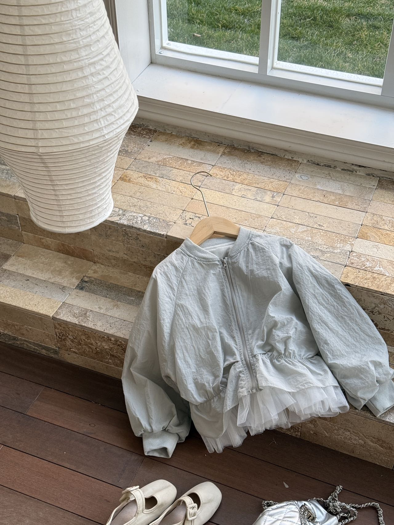 【轻纱絮语 | 以花苞为灵感,邂逅夏日浪漫】110-160❗️某猫同款,绝对的商超品质,SG超美花苞裙摆儿童外套❗️ 吊打市面同款❌重工打造,凉感轻纱泡泡袖棒球服,诠释夏日的轻盈美学❗️ ✔️薄纱邂逅立体剪裁的温柔,刚柔并济的层次感,行走之间摇曳生姿 ✔️ 下摆的「花苞裙式」设计是整件外套的点睛之笔!步履晃动时裙摆随风泛起,仙气飘飘 ✔️立体泡泡袖,宽松廓形不挑身材,胖瘦宝宝都可驾驭❗️