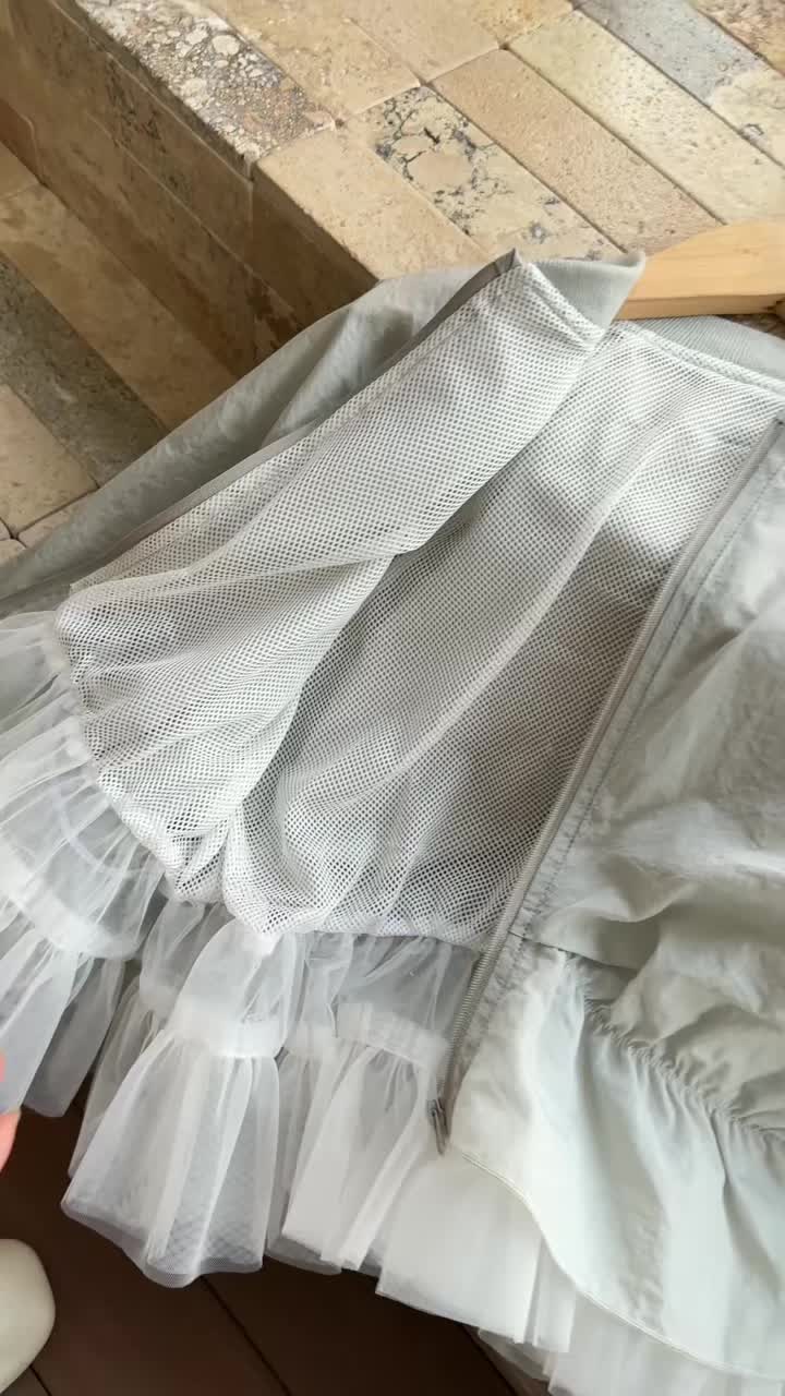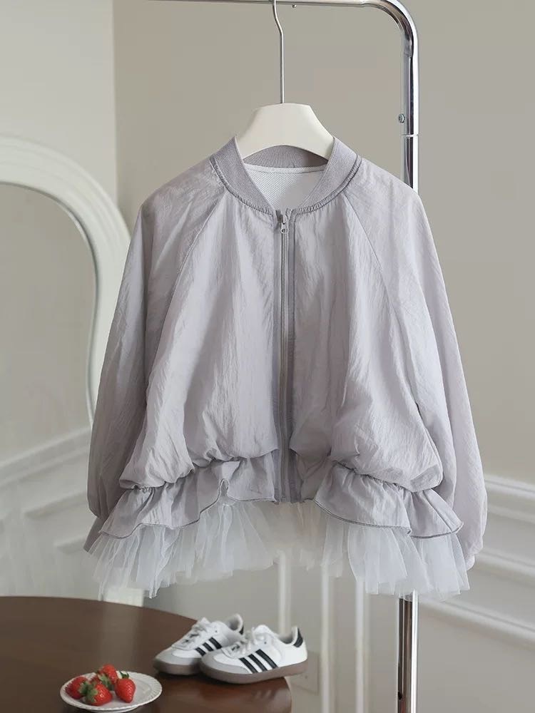 我们这次的外套以素色设计为主,不挑肤色、身材,版型特别好‼ 轻纱面料,棒球服小立领,泡泡袖,拼接轻纱裙摆,各个元素相互融合,肌肤与薄纱共舞,以花苞裙摆为灵感,邂逅夏日浪漫 上身真的是️小仙女本仙,绝绝子,太美啦‼ 天气逐渐热了,这种轻纱外套正好穿起来‼️