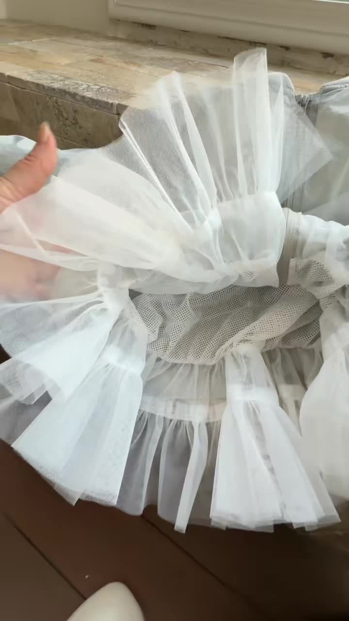 当晨雾般的薄纱邂逅立体剪裁的温柔,这款轻纱外套以「虚实相映」的拼接艺术,花苞袖口与肩线处透肤薄纱如风写诗,挺括的廓形衣身勾勒利落肩线,拼接轻纱蓬蓬裙摆,刚柔并济的层次感,让行走间皆是摇曳生辉的呼吸感,尽显高级感👍 立体剪裁,下摆立体褶裥如待放玫瑰层层舒展,360°蓬松量感巧妙藏肉,搭配同色系吊带连衣裙,可日常可出街,混搭打底裤或者牛仔裤与穆勒鞋,瞬间解锁慵懒法式风情。