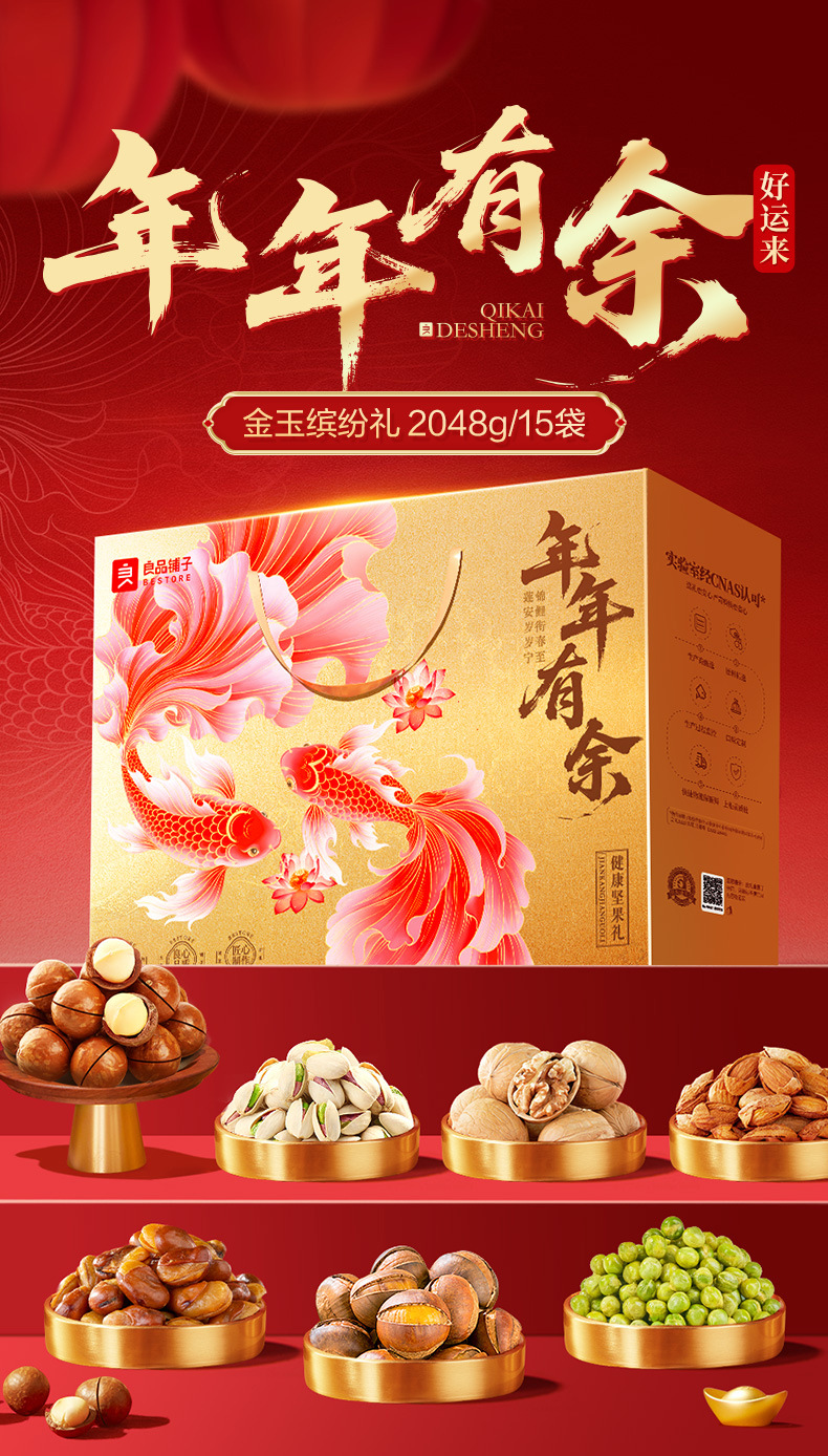 良品铺子 金玉缤纷礼2048g(欢瑞坚果礼2024g)俩款礼盒随机混发