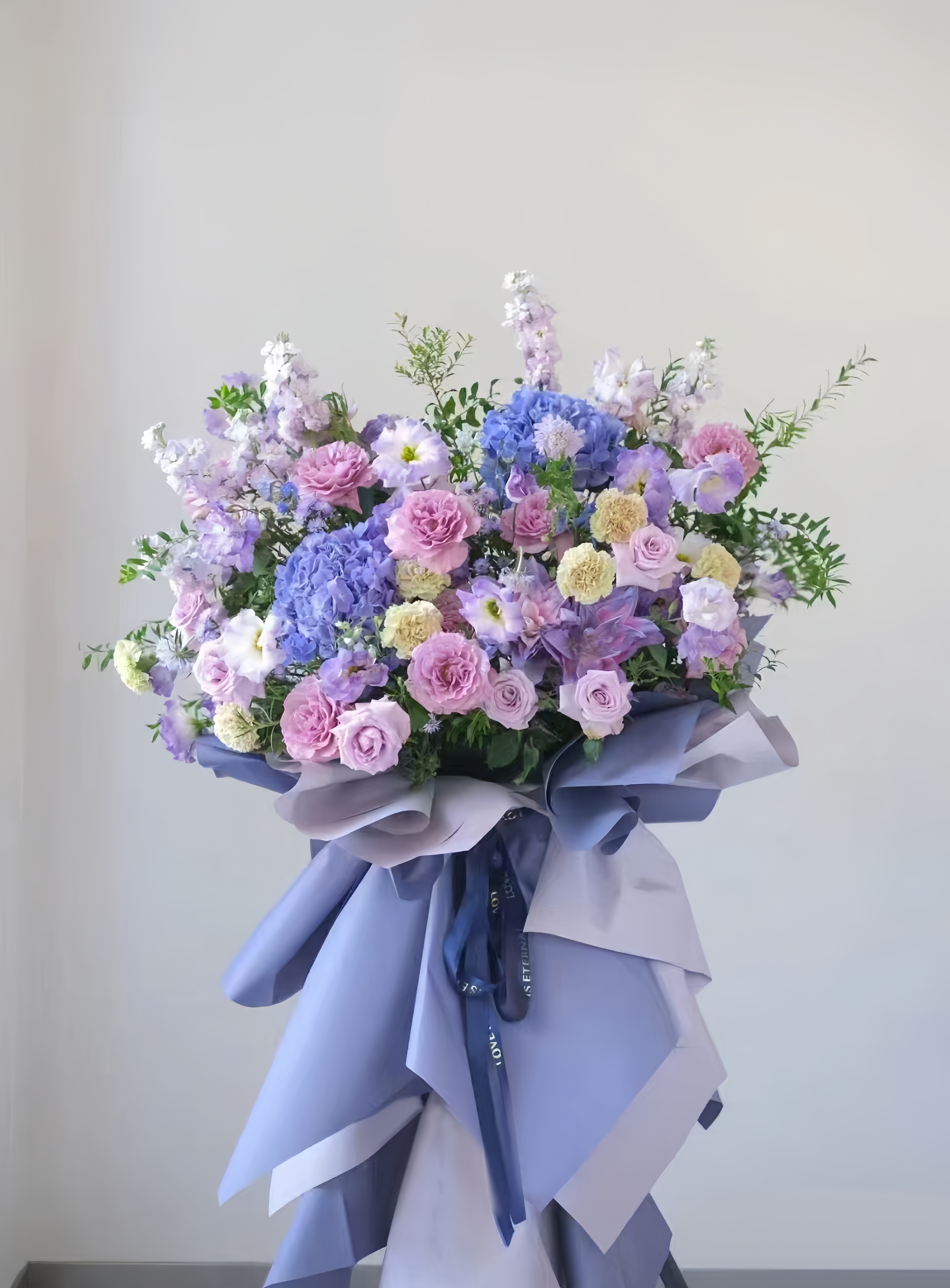 蓝紫基调开业花篮——开业花篮高端乔迁庆典商务用花|北京5环内免费送花上门