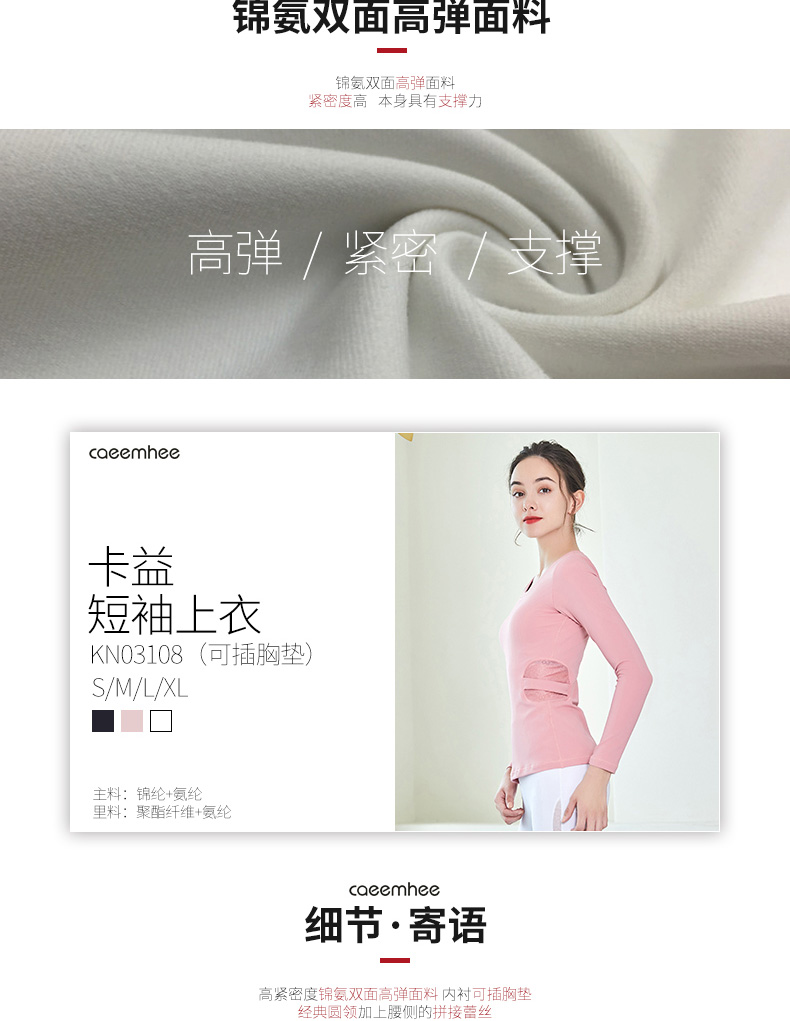 卡益裸感长袖上衣KN03108女士瑜伽服健身服