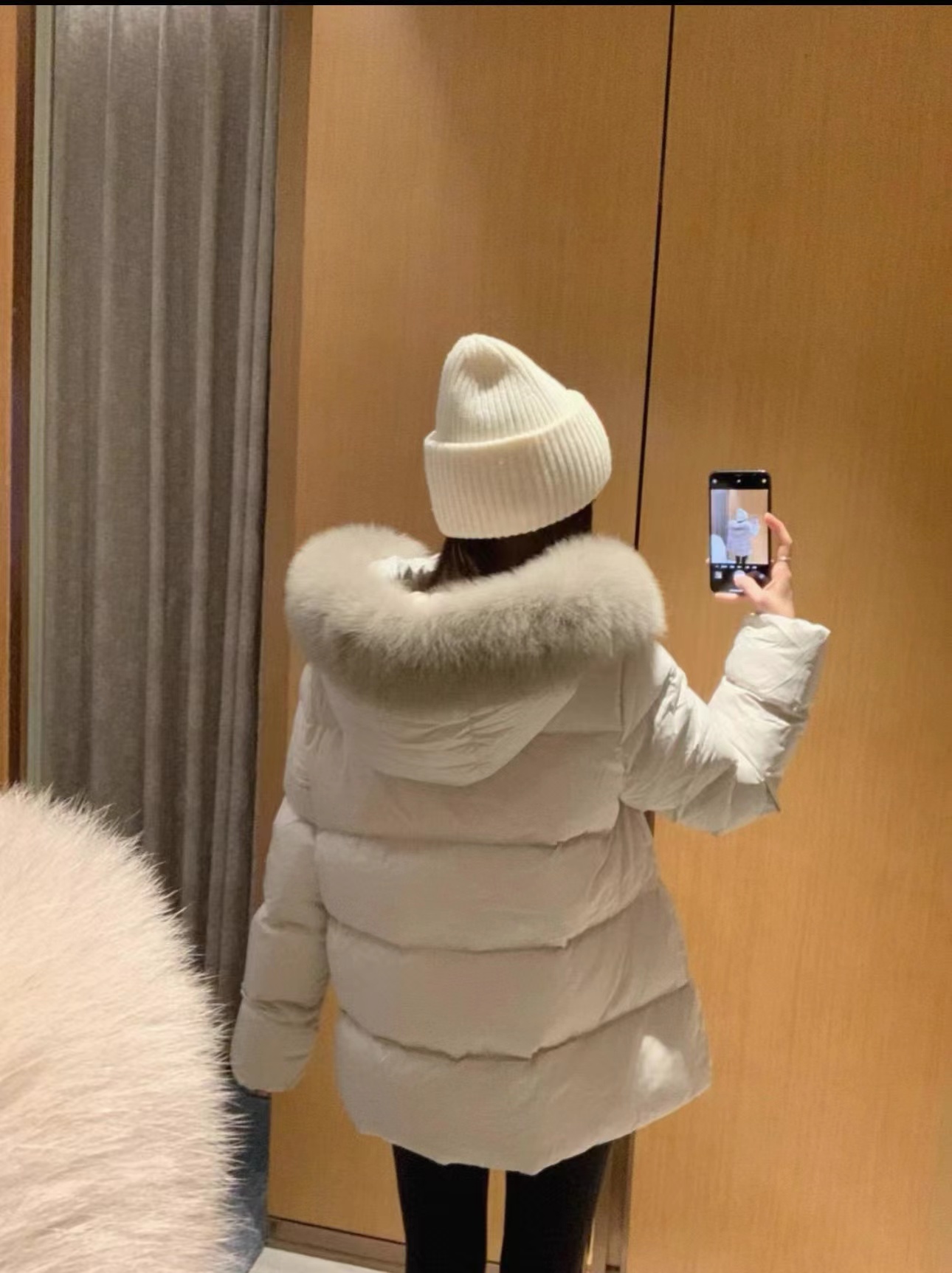 俏皮又减龄同时A字版型也对于梨形身材非常友好很遮肉肉面料:磨砂雾面质感,米白色超可爱 毛领今年也是很糕级she华,毛领软软糯糯的 手感很好软 还有一点点卷卷的质感超喜欢今年的毛领
