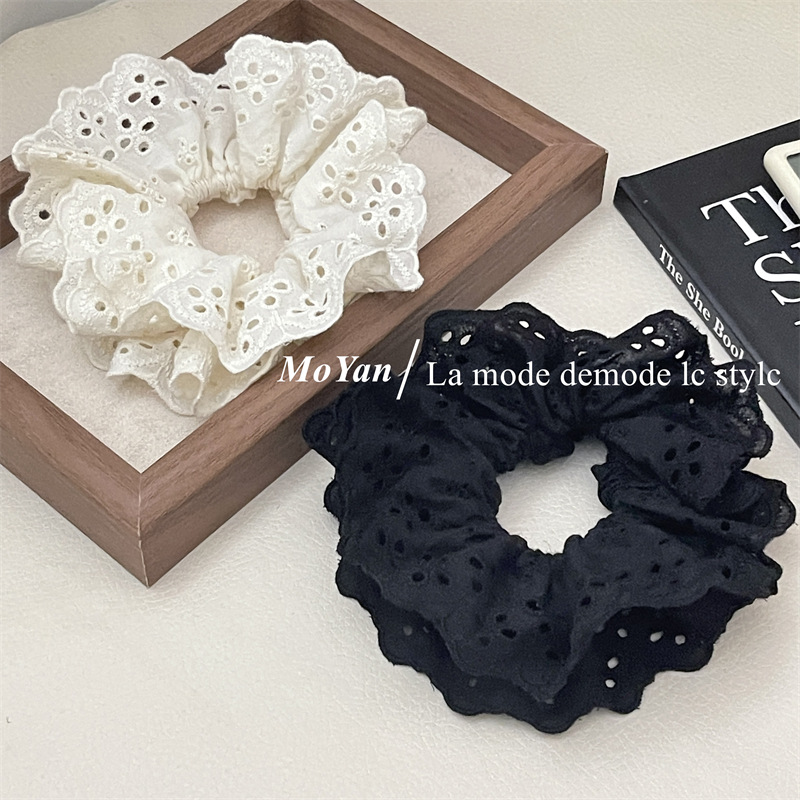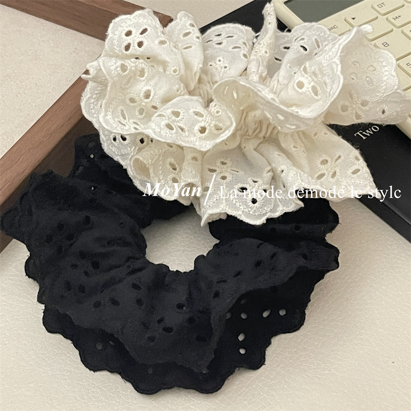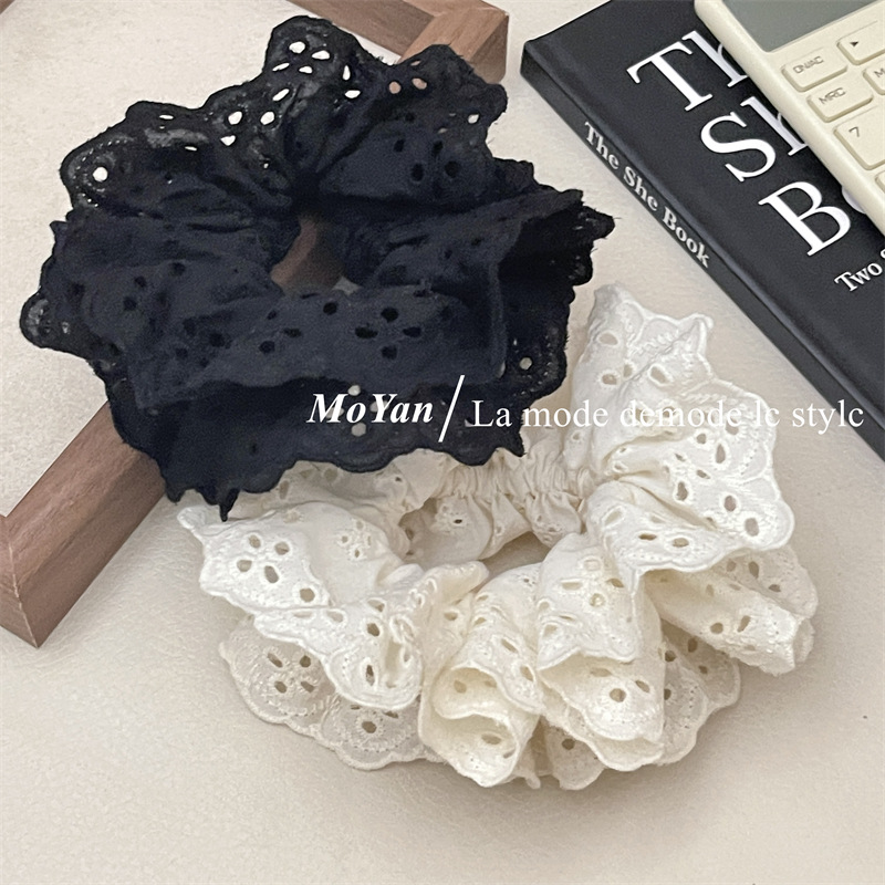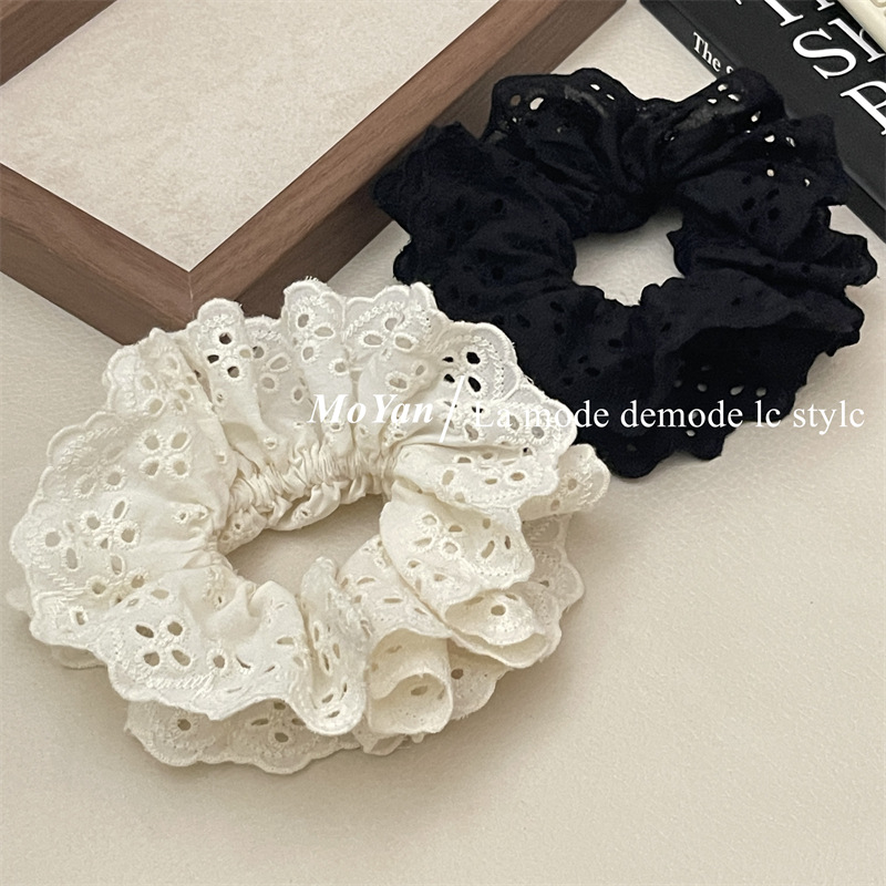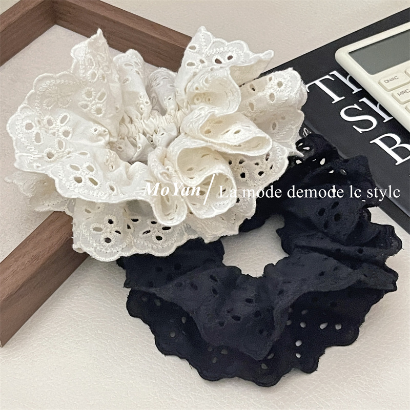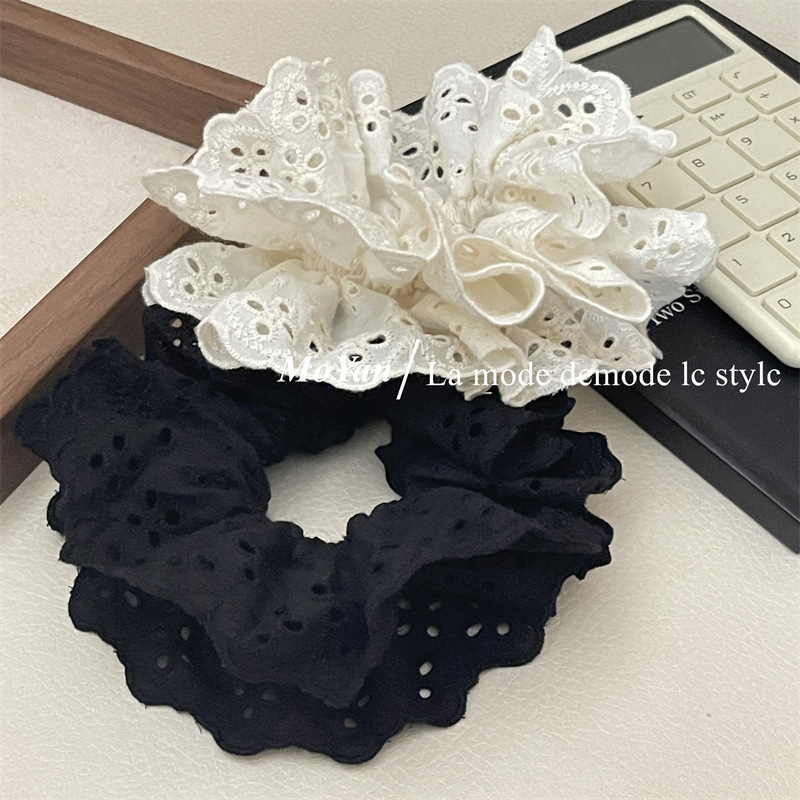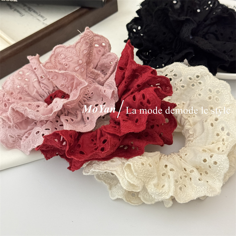 【超显脸小法式复古氛围感发圈】网红刺绣镂空蕾丝大肠发圈,重工刺绣镂空花纹荷叶边头花发饰发绳QQ