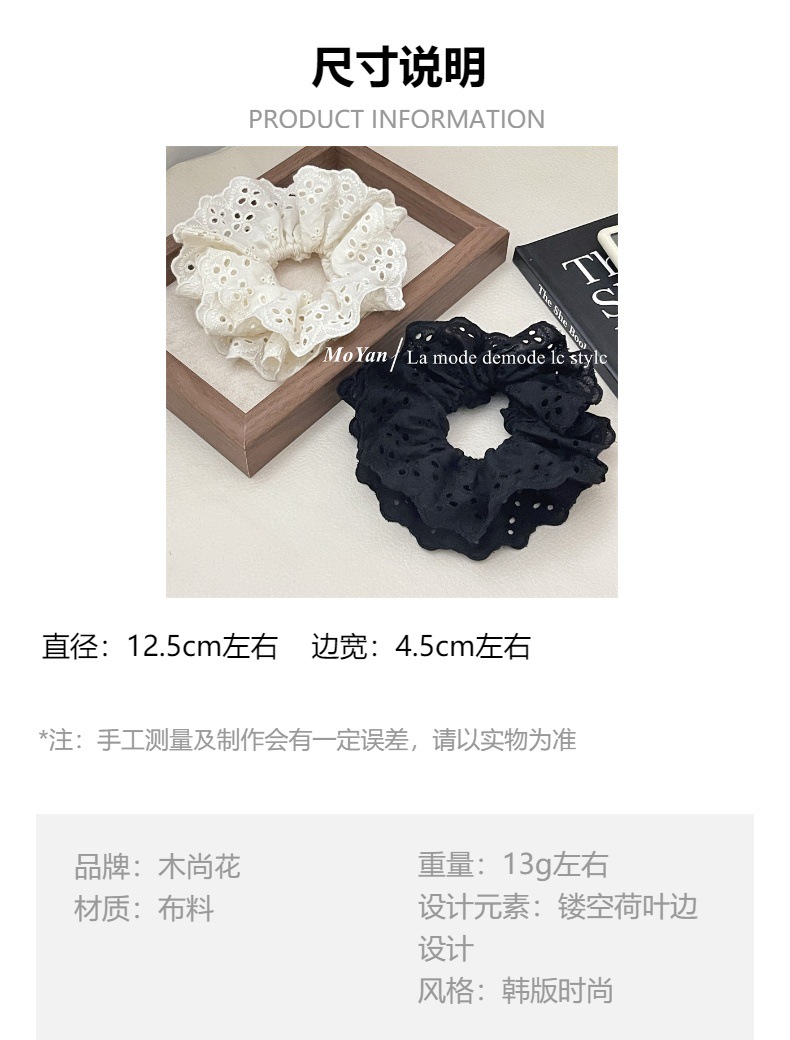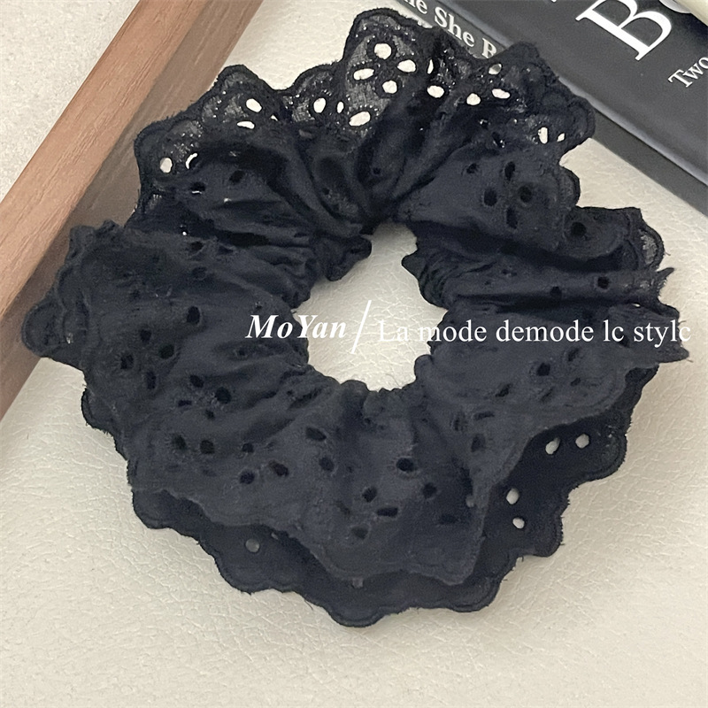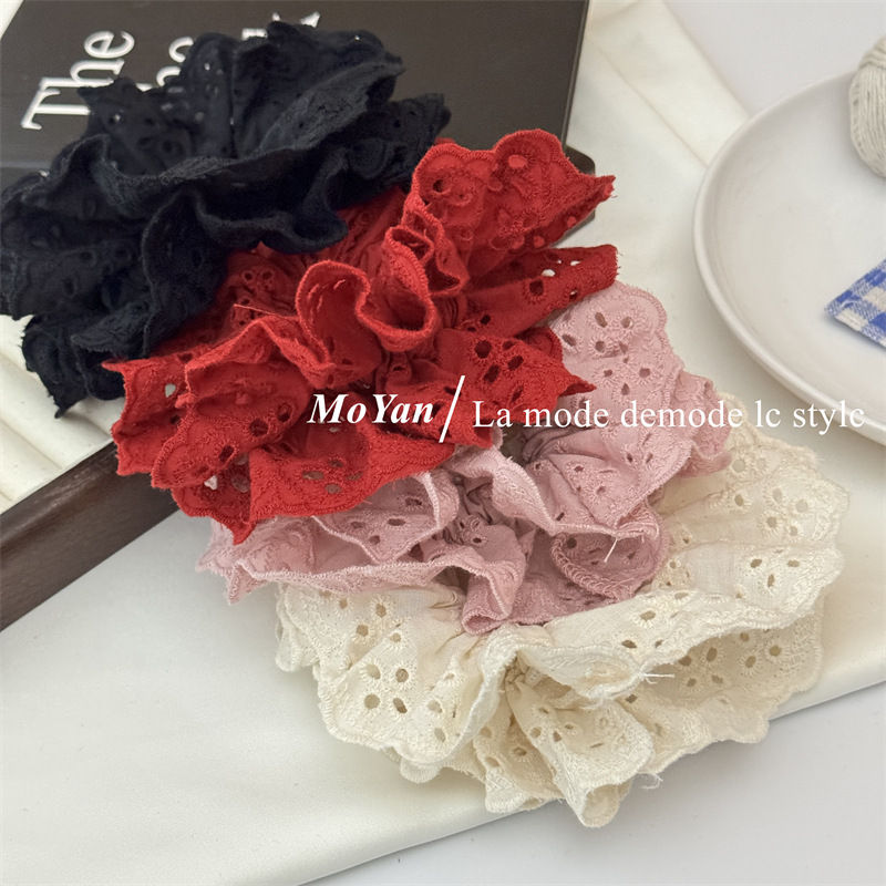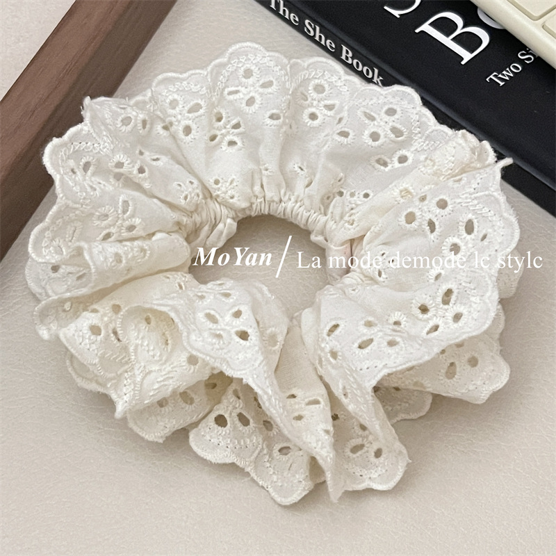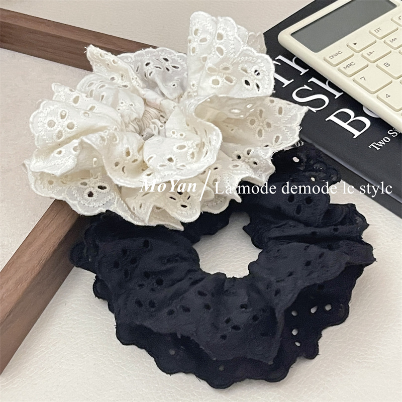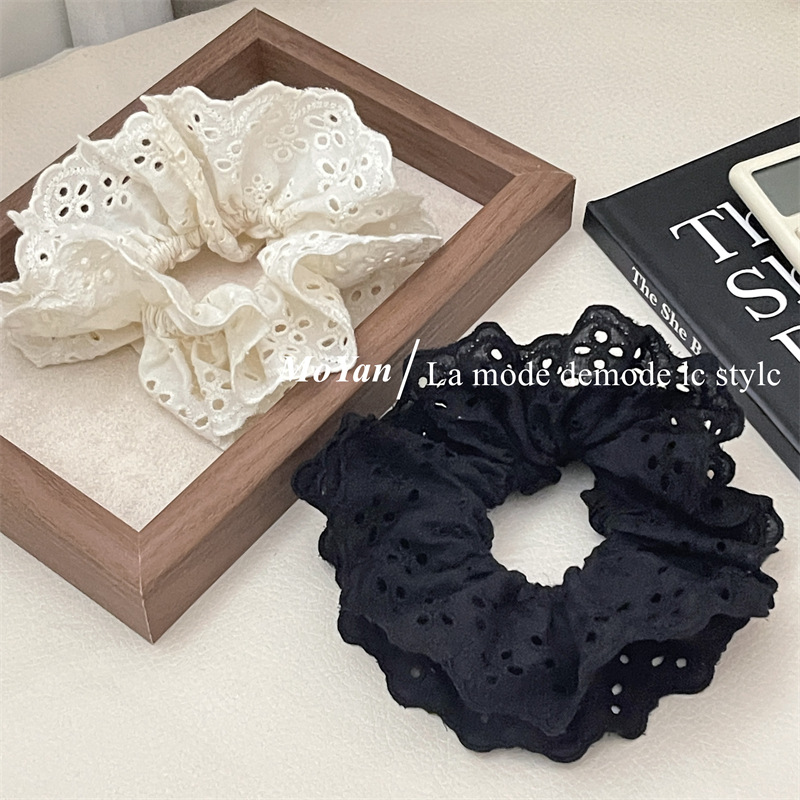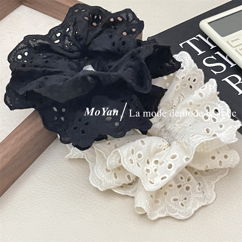 【超显脸小法式复古氛围感发圈】网红刺绣镂空蕾丝大肠发圈,重工刺绣镂空花纹荷叶边头花发饰发绳QQ