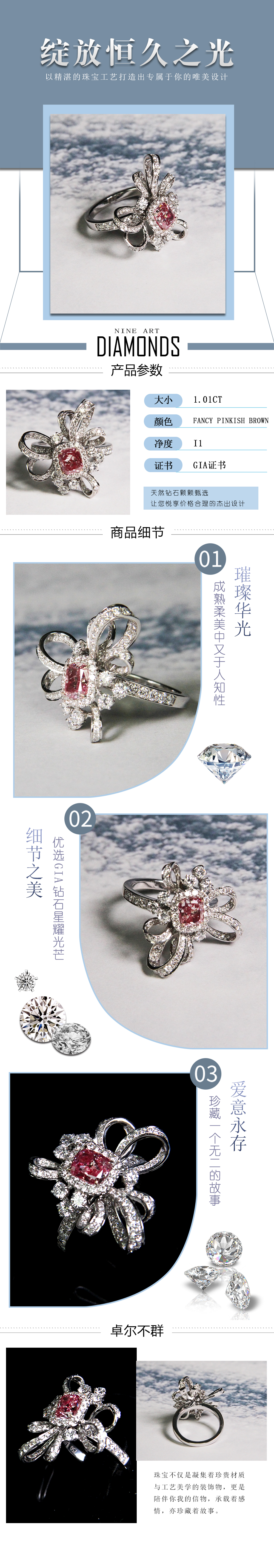 天然粉钻戒指1.01克拉