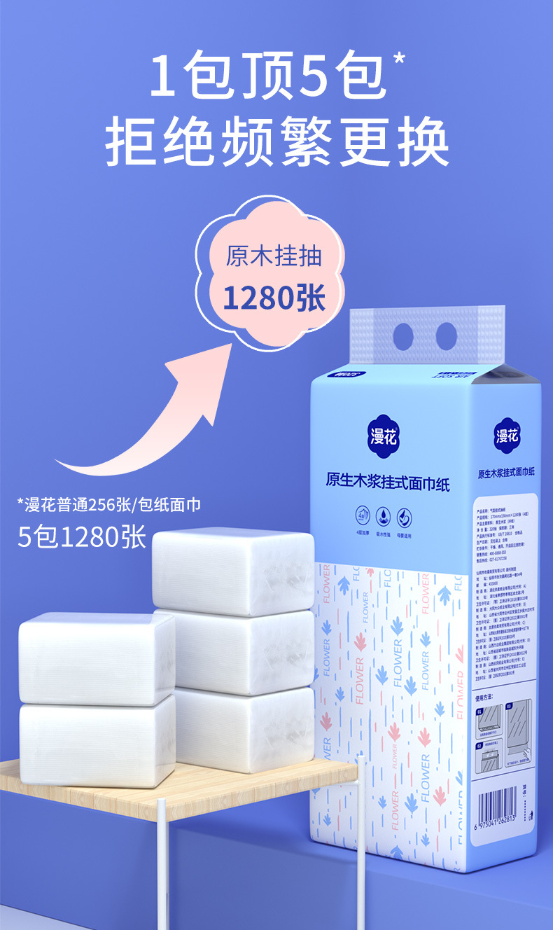 漫花悬挂式抽纸巾 清风原木手帕纸20包30包