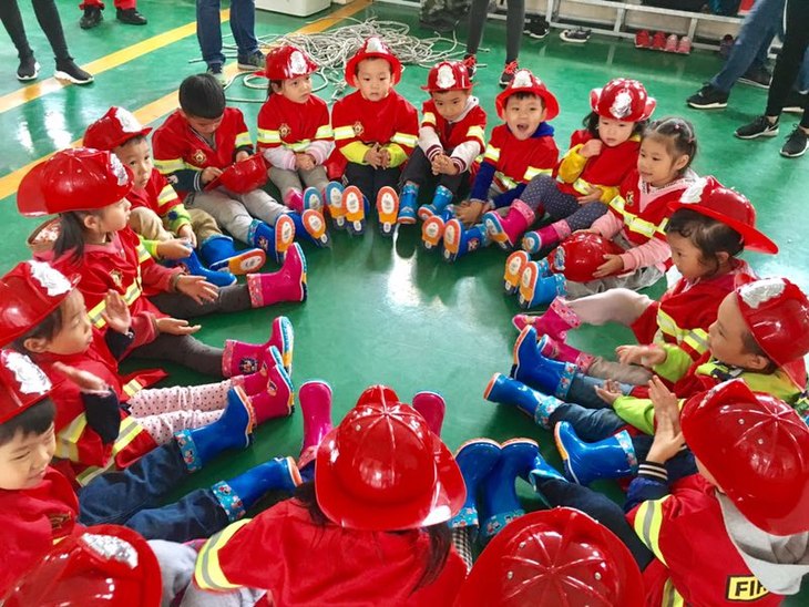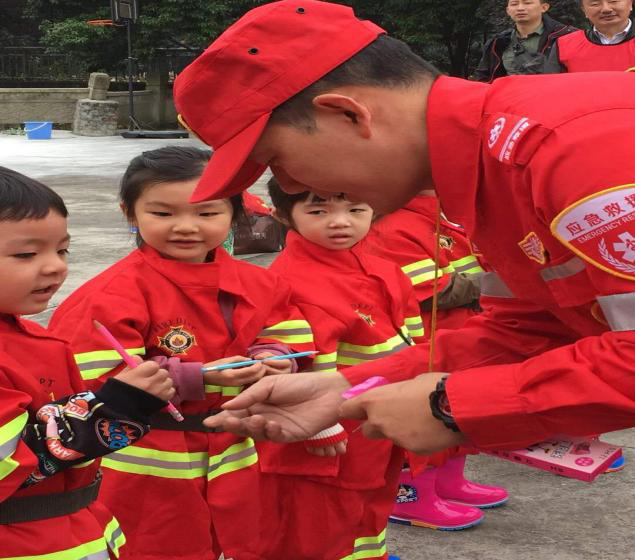 主要是让孩子学习和体验消防员的工作。通过学习连接水带,在日常生活中很好的利用我们身边的消防设施和让每名孩子体验消防员训练的感受。