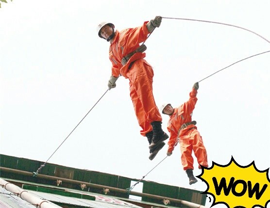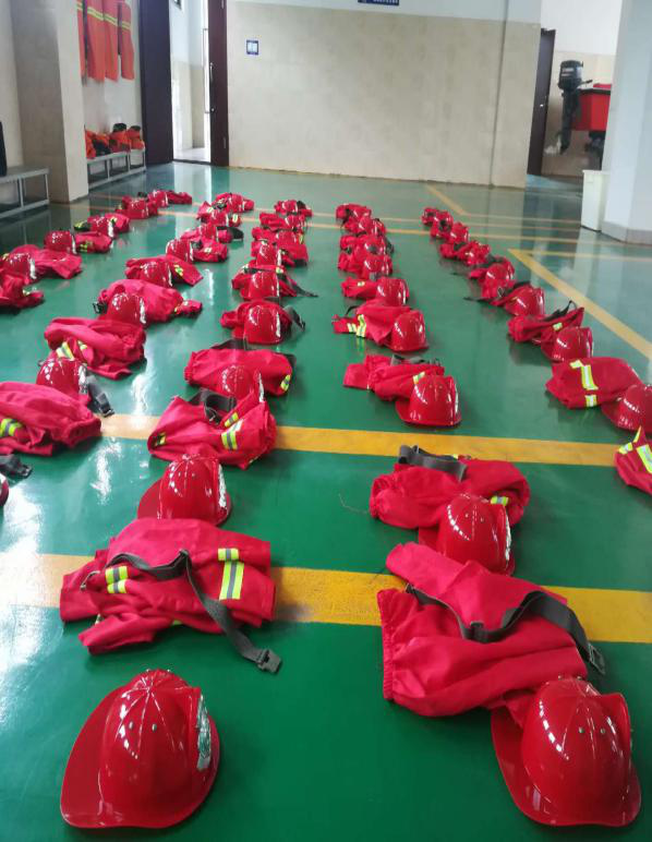 通过学习穿衣服让大家体会消防员训练的速度和辛苦,平常出警(全天任何时候)车辆驶离车库必须在1分钟内完成,消防员穿一套衣服只用22秒。