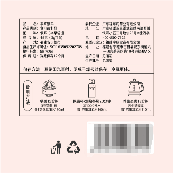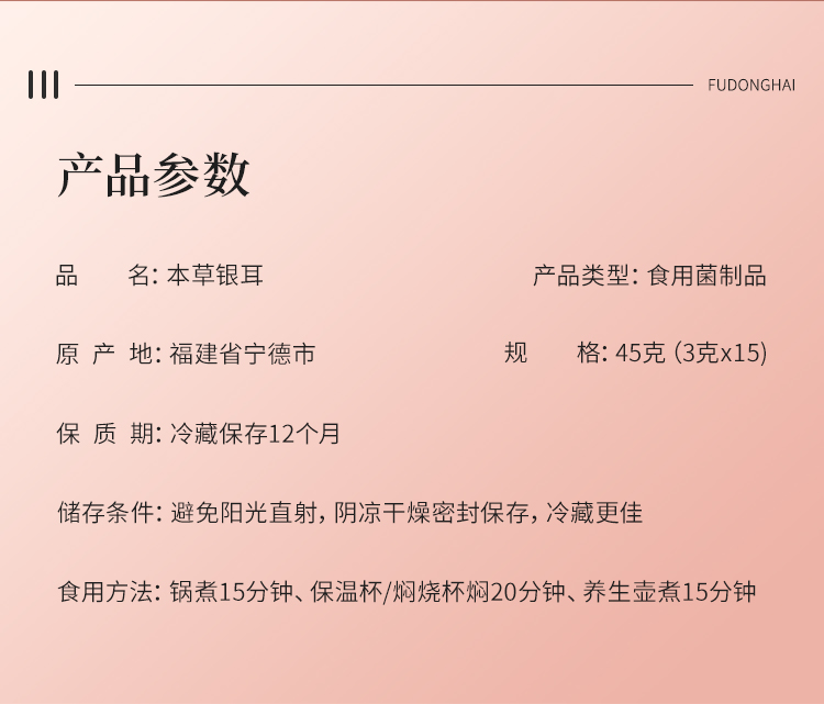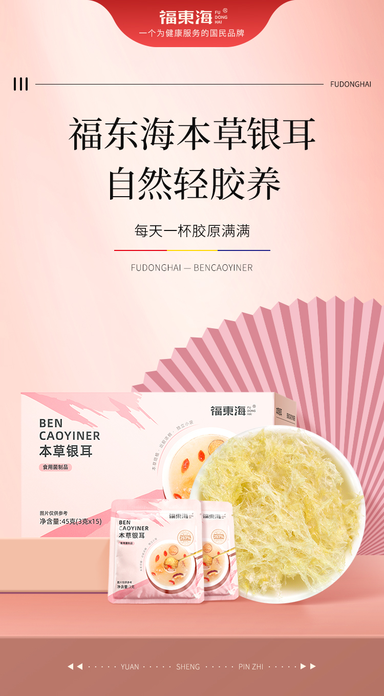 【福东海】 草本银耳45g/盒(3g*15袋) 燕耳雪耳干货银耳羹 免洗免泡即食早餐 独立小包装便捷-MD