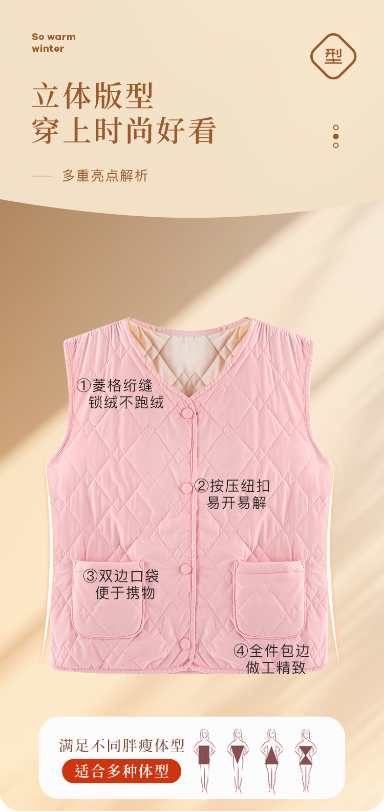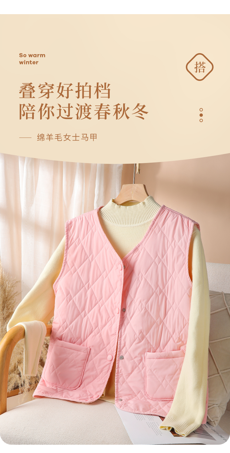 【100%绵羊毛填充】马甲女士保暖上衣气质纯色马甲外穿背心三防男女马甲