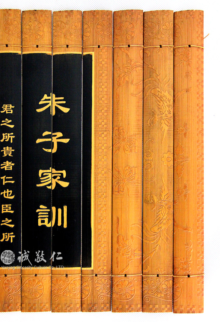 【基本信息】: 产品材质:优质竹简 产品规格:106*35厘米 【产品文化】: 朱子家训 【产品文化】: 宋 朱熹 君之所贵者,仁也。臣之所贵者,忠也。父之所贵者,慈也。子之所贵者,孝也。兄之所贵者,友也。弟之所贵者,恭也。夫之所贵者,和也。妇之所贵者,柔也。事师长贵乎礼也,交朋友贵乎信也。见老者,敬之;见幼者,爱之。有德者,年虽下于我,我必尊之;不肖者,年虽高于我,我必远之。慎勿谈人之短,切莫矜己之长。仇者以义解之,怨者以直报之,随所遇而安之。人有小过,含容而忍之;人有大过,以理而谕之。勿以善小而不为,勿以恶小而为之。人有恶,则掩之;人有善,则扬之。处世无私仇,治家无私法。勿损人而利己,勿妒贤而嫉能。勿称忿而报横逆,勿非礼而害物命。见不义之财勿取,遇合理之事则从。诗书不可不读,礼义不可不知。子孙不可不教,童仆不可不恤。斯文不可不敬,患难不可不扶。守我之分者,礼也;听我之命者,天也。人能如是,天必相之。此乃日用常行之道,若衣服之于身体,饮食之于口腹,不可一日无也,可不慎哉! 【悬挂方法】: 1、竹简两端的竹片背面有绳子,可直接挂在墙上的钉子或者挂钩上; 2、还可以如书法作品一样加画框装裱,更显庄严; 3、如不挂墙上,可直接展开,靠在橱窗或墙壁上。 |
