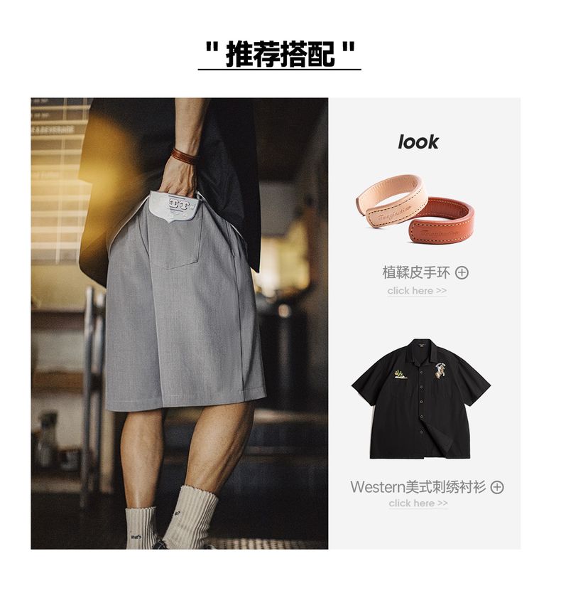 工装优选美式西装短裤宽松老钱风薄款梭织透气cleanfit五分裤男夏