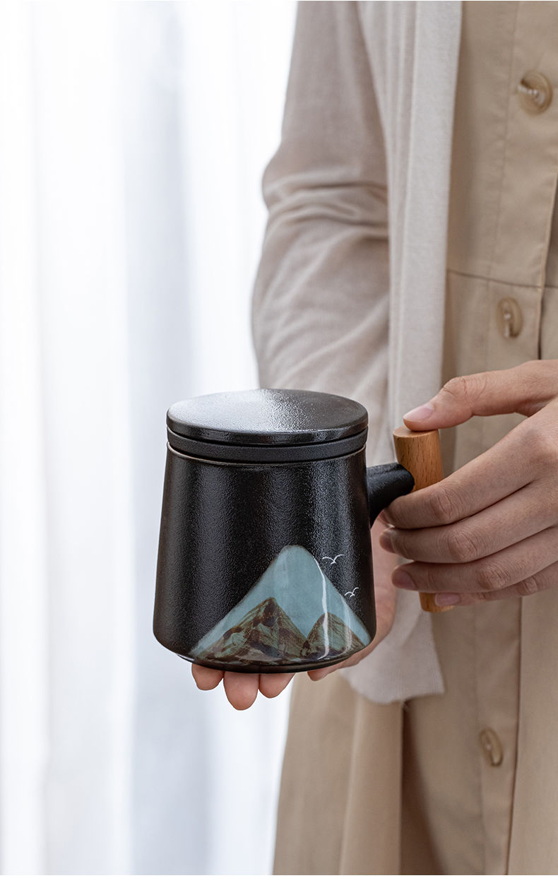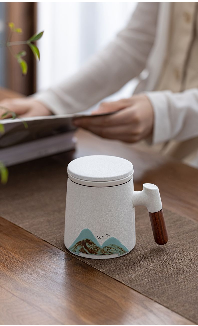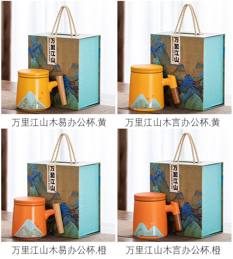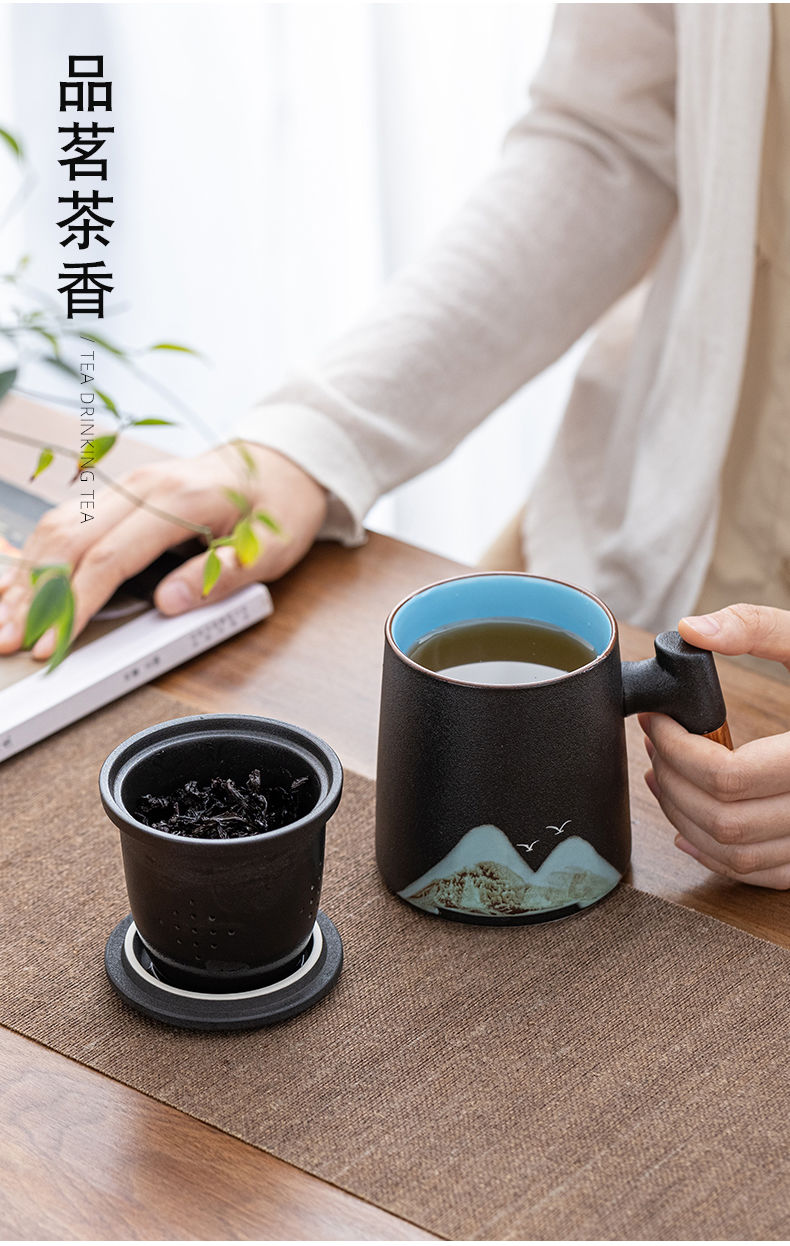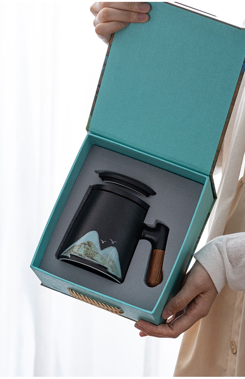 陶瓷茶水分离杯万里江山过滤泡茶杯办公室水杯马克杯带盖节庆礼品