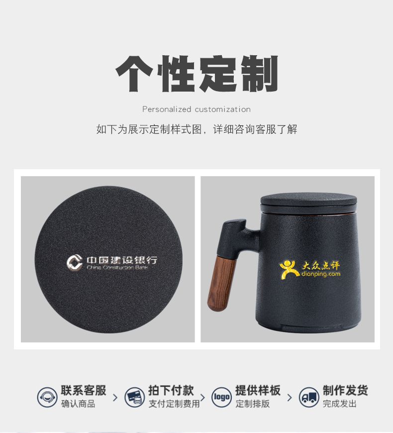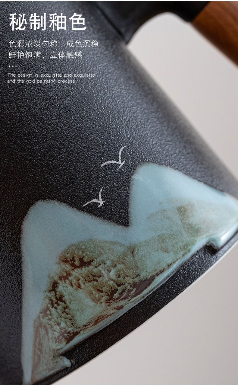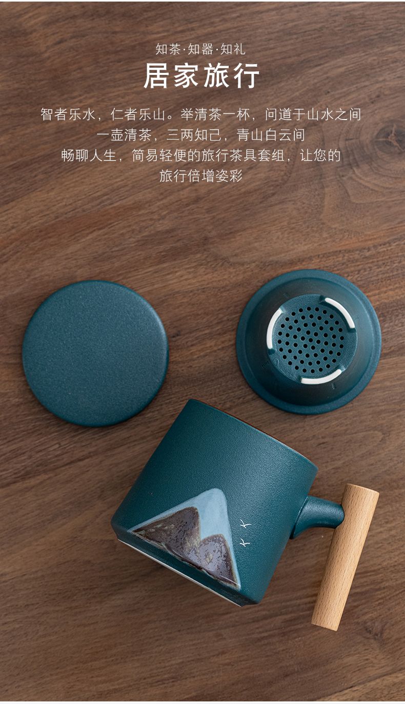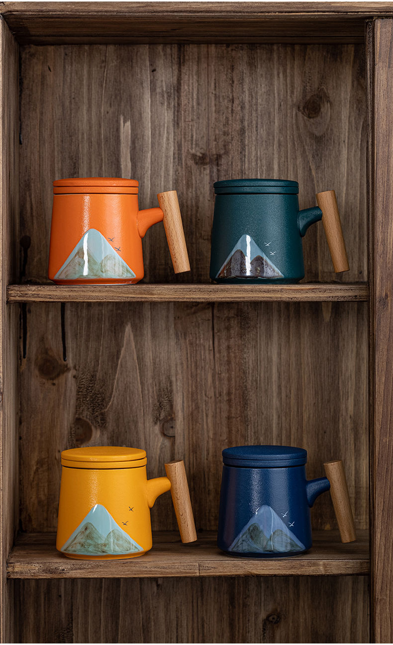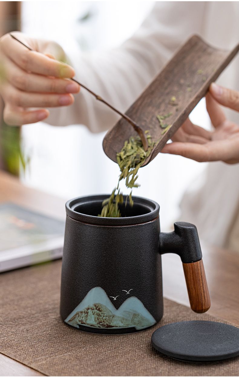 陶瓷茶水分离杯万里江山过滤泡茶杯办公室水杯马克杯带盖节庆礼品