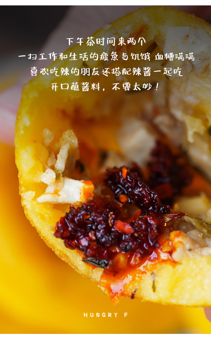 这是非遗继承人出品的玉米饼,地地道道的纯手工制作。跟市面上大多加了面粉或糯米粉的玉米饼不同,它的饼皮选用纯玉米粉,由于黏性不如面粉,一不小心就会散开,所以要制作成柔润光滑的面团需要十足的手艺才可以。摘一块粉团,揉圆后用两个手掌对拍,使粉团变成了厚薄均匀的面皮,然后裹上由鲜肉、咸菜、萝卜等桐庐地方特色馅料,用旋转式手法轻轻调整成圆饼,扔进油锅,煎炸至表面金黄。老底子的手艺,小时候的味道。
