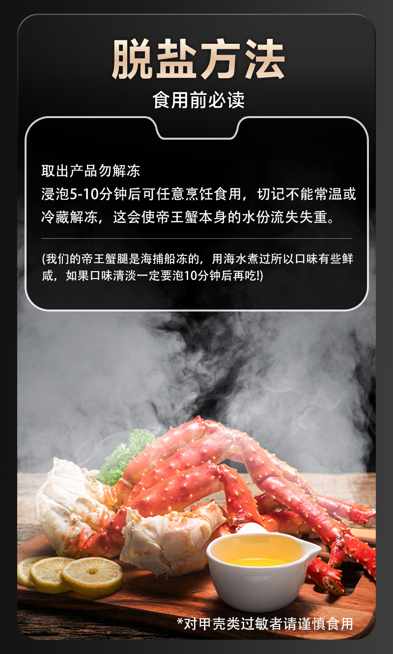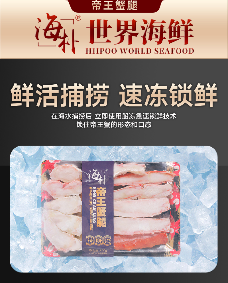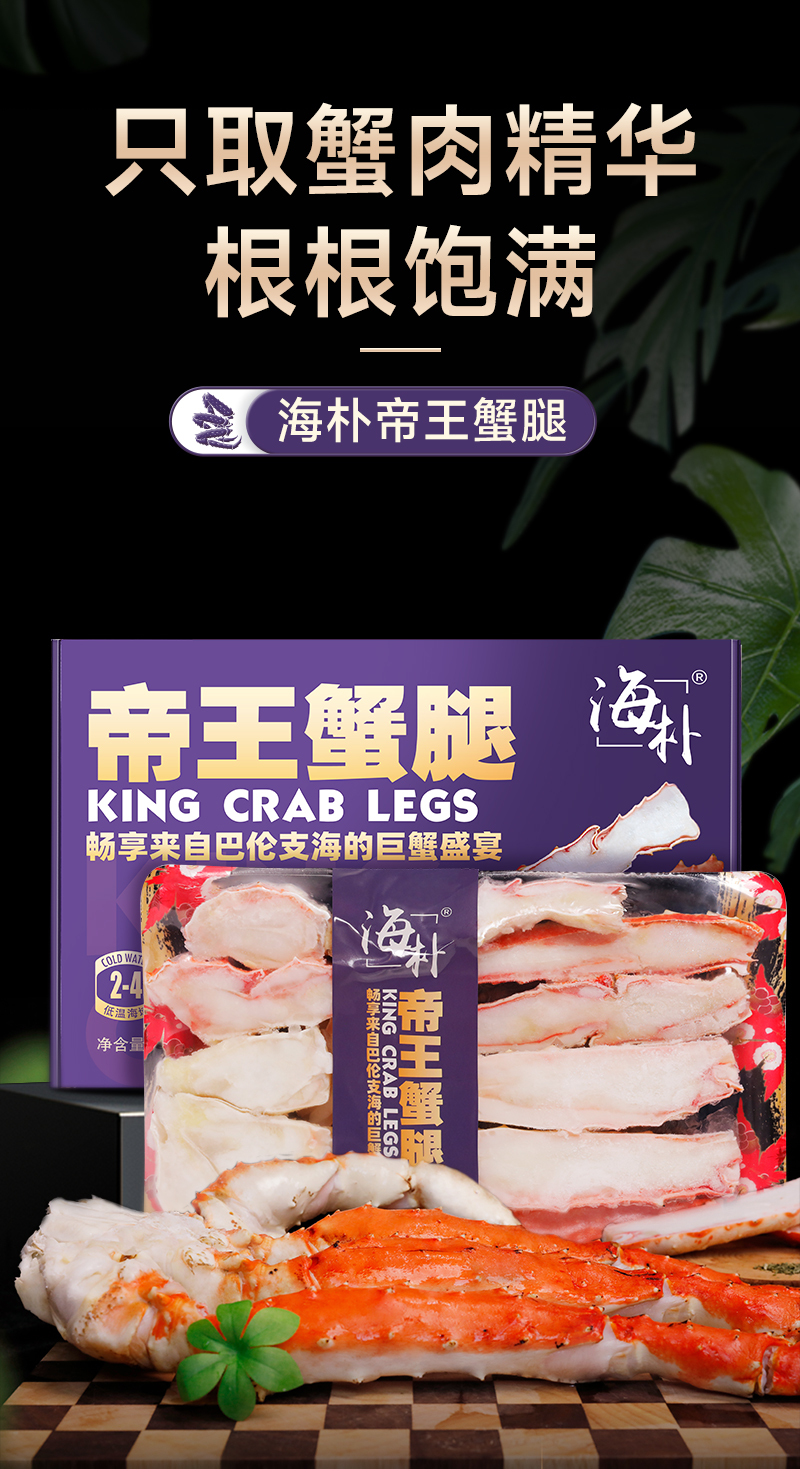 海朴冷冻帝王蟹腿750g鲜香美味解冻即食礼盒装