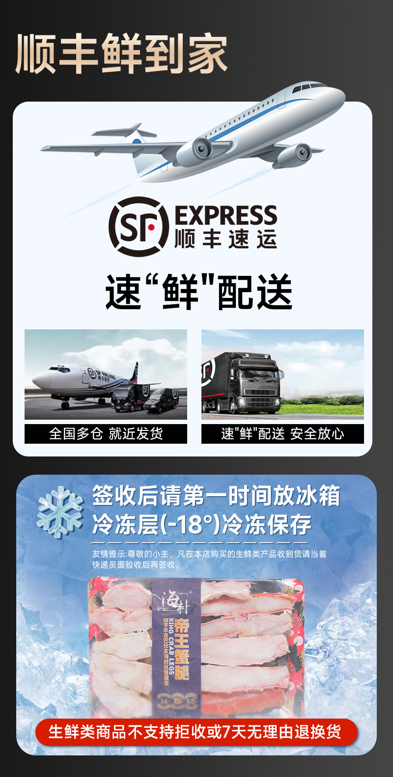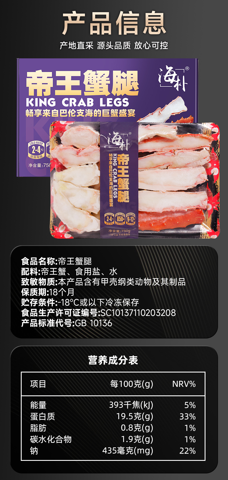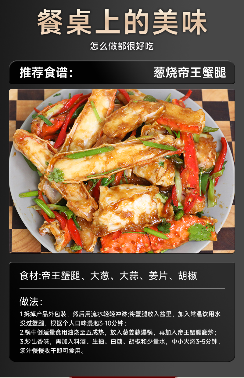 海朴冷冻帝王蟹腿750g鲜香美味解冻即食礼盒装