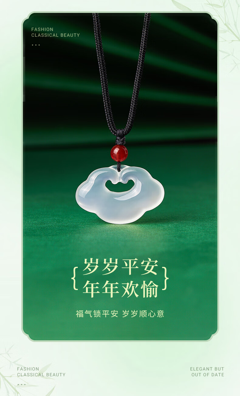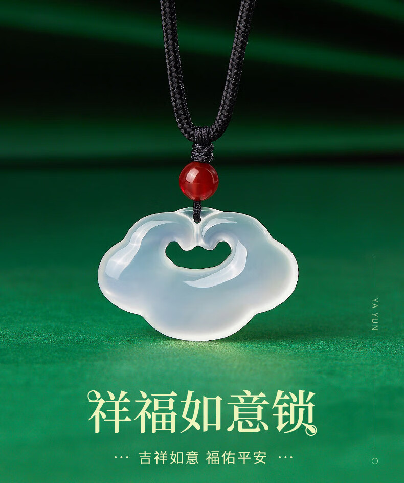 【母亲节礼物】【小如意】六鑫珠宝 高冰玉髓祥云平安如意锁吊坠