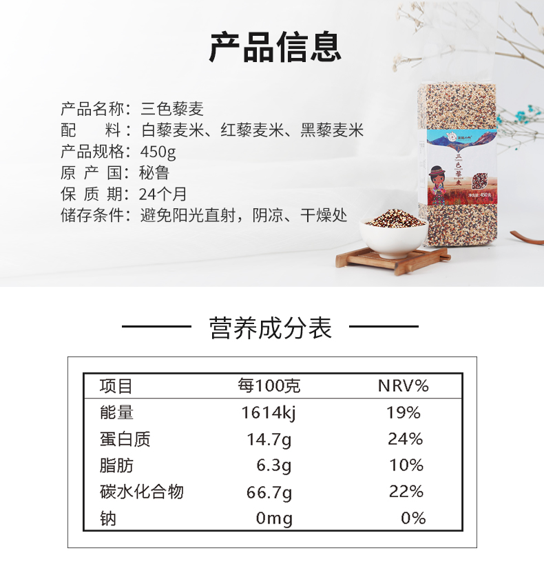【拍1发2】秘鲁进口三色藜麦 轻热量高营养 绿色健康代餐食品 高蛋白多膳食纤维 36国权威有机认证