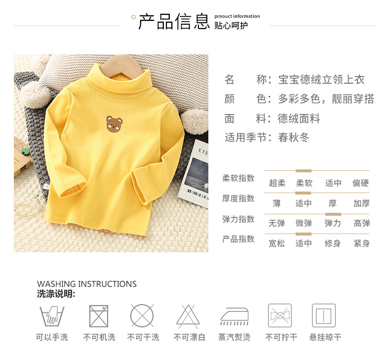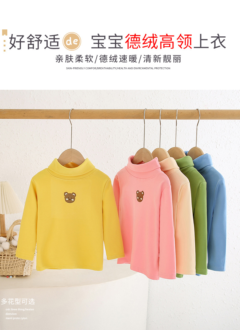 【宝宝德绒立领上衣 速暖锁温】秋冬儿童保暖打底衫男童女童半高领加厚德绒上衣宝宝韩版高领内搭