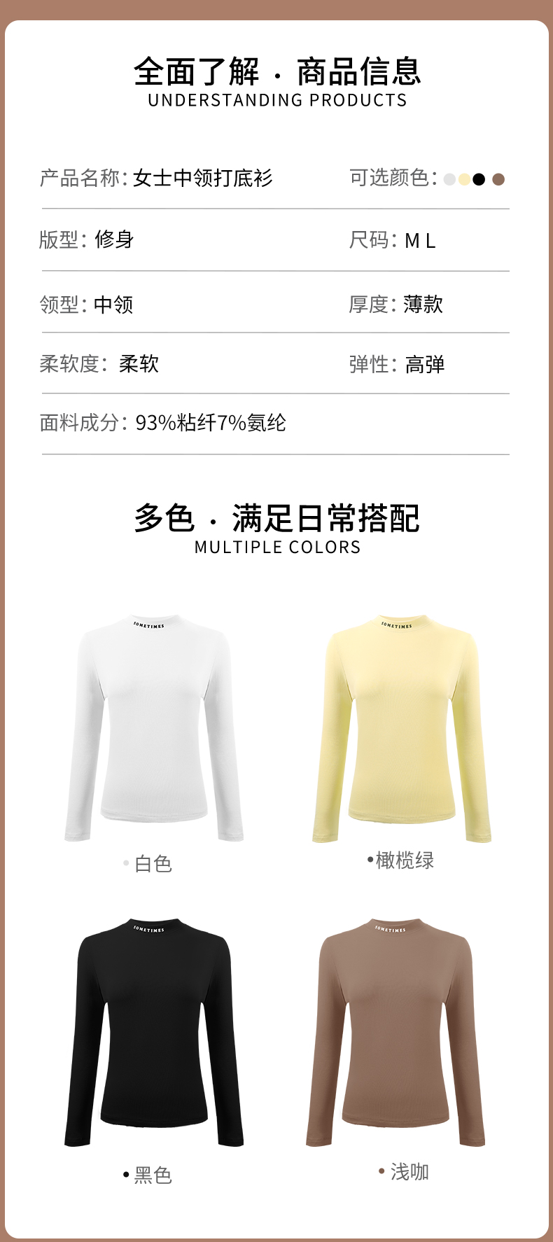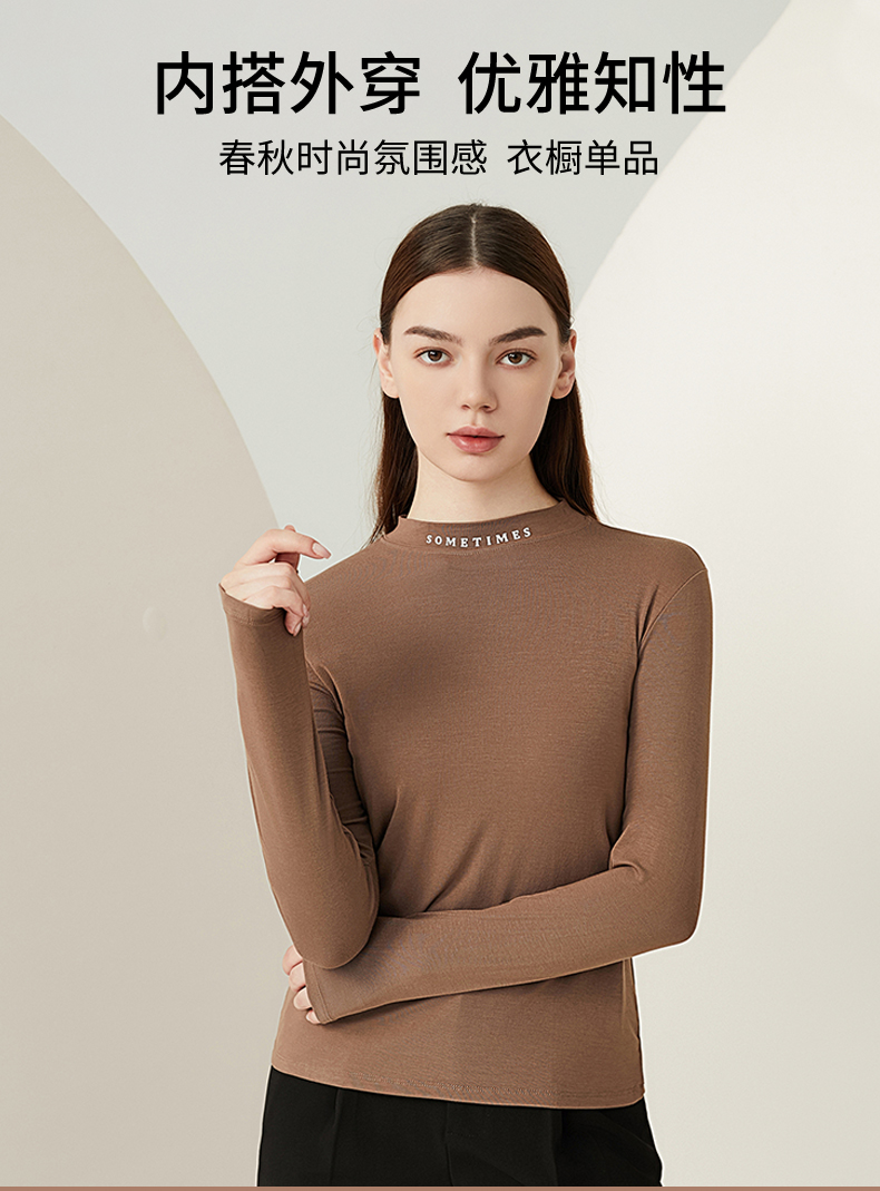雅黛丽保暖内衣秋衣女款秋冬内搭修身可外穿打底衫中领长袖上衣女